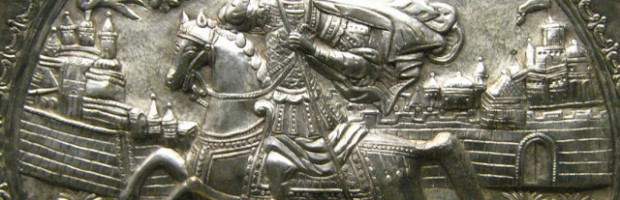 ο οποίος εικονίζεται έφιππος να φονεύει εχθρικό στρατιώτη και να σώζει την πολιορκημένη Θεσσαλονίκη.