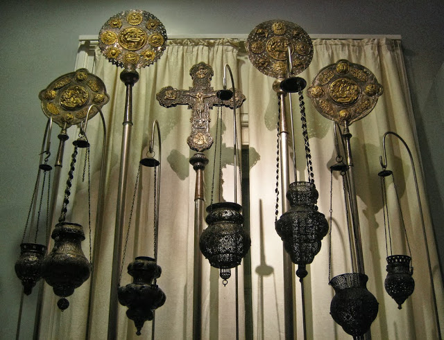 Από τα εξαιρετικά δείγματα νεοελληνικής εκκλησιαστικής τέχνης είναι και ο παρακάτω ασημένιος δίσκος με παράσταση του Αγίου Δημητρίου, ο οποίος εικονίζεται έφιππος να φονεύει εχθρικό στρατιώτη και να σώζει την πολιορκημένη Θεσσαλονίκη, η οποία φαίνεται στο βάθος με τα κάστρα και τις εκκλησίες της. Οι ειδικοί του Μουσείου Μπενάκη πιστεύουν ότι με τη μορφή του νεκρού στρατιώτη αναπαρίσταται ο Bούλγαρος τσάρος Kαλογιάννης ή Σκυλογιάννης (ο επικληθείς και Ρωμαιοκτόνος). Ο δίσκος ήταν κτήμα της εκκλησίας του Αγίου Δημητρίου της Καλλίπολης Μικράς Ασίας σύμφωνα με την κτητορική επιγραφή που φέρει: ΤΗΣ ΕΚΚΛΗΣΙΑΣ ΤΟΥ ΑΓΙΟΥ ΔΗΜΗΤΡΙΟΥ ΤΗΣ ΚΑΛΛΙΟΥΠΟΛΕΩΣ ΚΤΗΜΑ ,ΑΩΝΒ΄ (=1852) ΜΑΡΤΙΟΥ Ι’ και ήρθε στην Ελλάδα με τους ταλαίπωρους πρόσφυγες της Μικράς Ασίας, οι οποίοι φρόντισαν στις φλόγες της Μικρασιατικής Καταστροφής να διασώσουν με τη ψυχή στο στόμα τα ιερά λείψανα και τις άγιες εικόνες των εκκλησιών τους.