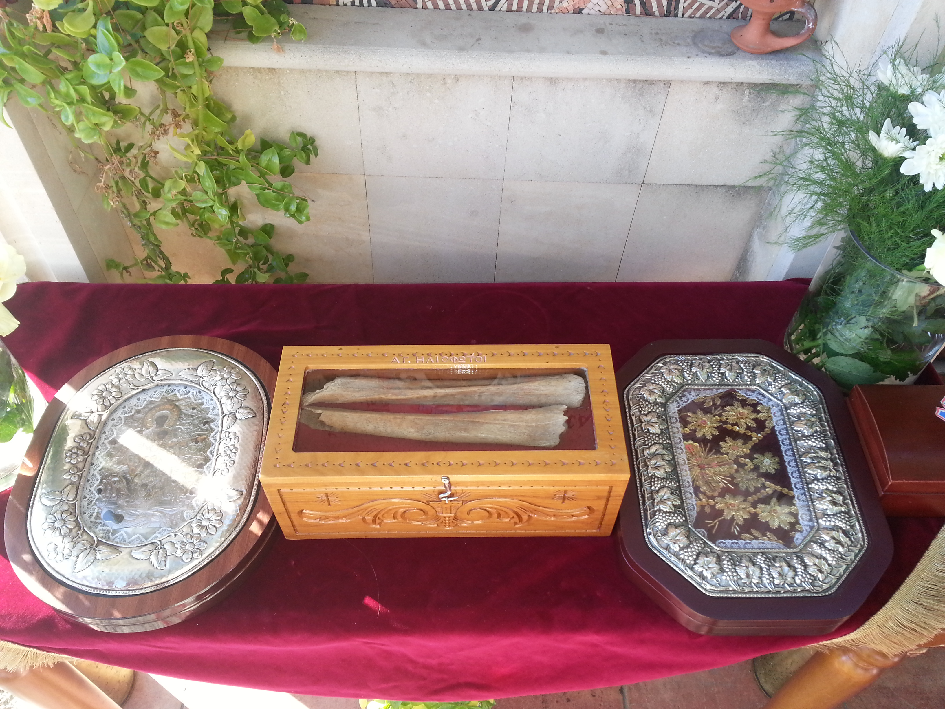 Κατά τη διάρκεια της ακολουθίας, έγινε υποδοχή της Θαυματουργού Εικόνος της Χρυσοπαντάνασσας και των Ιερών Λειψάνων των Αγίων Ηλιοφώτων, που συνόδευσαν ο Ιερέας και ο Πρόεδρος, της κοινότητας χ.Αγροκηπιάς.
