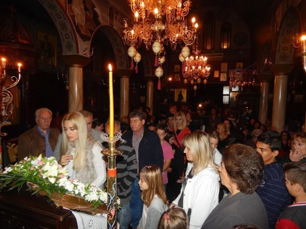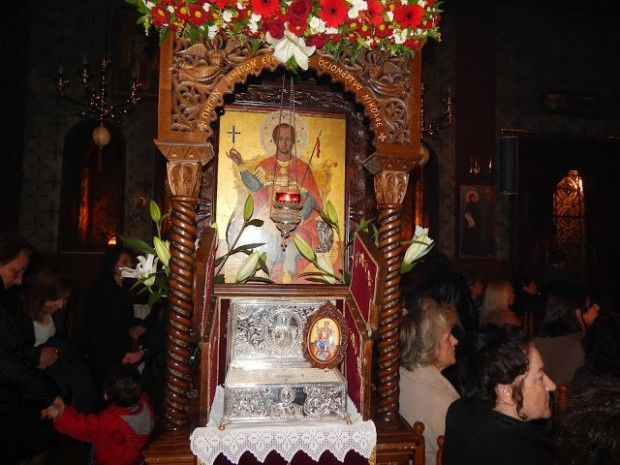 Το πρωί της Κυριακής 3 Νοεμβρίου 2013 στα πλαίσια των Λατρευτικών Συνάξεων για το Θαύμα του Αγίου Νικολάου του Νέου δια του οποίου διέσωσε την Φερώνυμη Ενορία στη Θήβα στα δύσκολα και απαρηγόρητα χρόνια της Γερμανικής Κατοχής από την οργή και τα αντίποινα των αιμοβόρων Ναζί και για την Παρουσία της Θαυματουργού Εικόνος της Παναγίας της Μυρτιδιωτίσσης Μικρασιάτικο Κειμήλιο του Μακαριστού Γέροντος Χρυσοστόμου (Αγγέλου), τελέσθηκε Αρχιερατική Θεία Λειτουργία με ιερουργό τον Σεβ.Μητροπολίτη Σιγκαπούρης κ.Κωνσταντίνο και η Ευχαριστήριος Δοξολογία. Ο Σεβασμιώτατος στο κήρυγμα του αναφέρθηκε στο εορταζόμενο γεγονός, στην Ευαγγελική περικοπή και στις δυσκολίες του Ιεραποστολικού έργου που η Εκκλησία του εμπιστεύθηκε στην μακρινή Νότιο Ασία «σε χώρες όπου για να μπορέσουμε να ανοίξουμε μια Εκκλησία και να λειτουργήσουμε είναι μεγάλο γεγονός, υπογράμμισε ο Σεβασμιώτατος. Διότι οι τόποι εκεί είναι αφιλόξενοι, οι άνθρωποι θεωρούν τον Χριστιανισμό κάτι εχθρικό, κάτι δύσκολο, κάτι το οποίο φέρνει προκατάληψη και δυσπιστία για τις δικές τους παραδόσεις. Εμείς σήμερα ήλθαμε στην Εκκλησία να προσευχηθούμε ελεύθερα, ήλθαμε στην Εκκλησία να ακουμπήσουμε την καρδιά μας στον Θεό η και πολλές φορέα ακούμε την καμπάνα να κτυπά και λέμε η Εκκλησία θα είναι πάντοτε εκεί. Για κάποιους ανθρώπους δεν υπάρχει η Εκκλησία, δεν θα ακούσουν ποτέ την καμπάνα, δεν θα μπορέσουν να λειτουργηθούν θα πρέπει να πάνε κρυφά για να γίνει μια Θ.Λειτουργία.