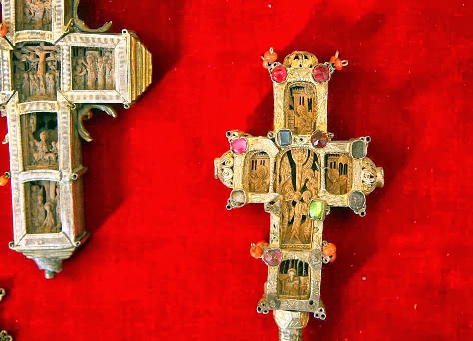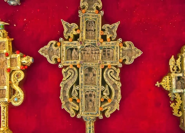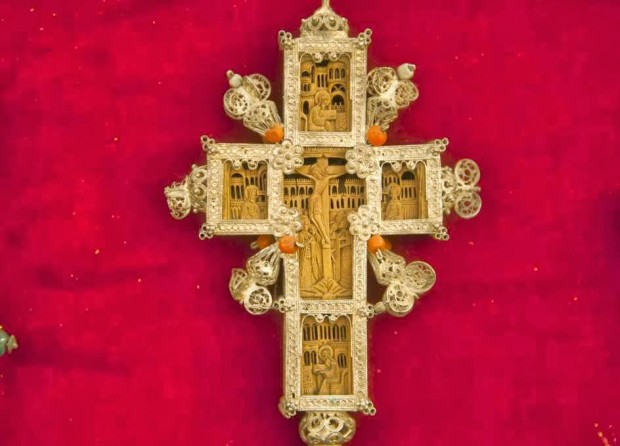 Η σταυροθήκη με τα υπολείμματα του χιαστί σταυρού με τον οποίο μαρτύρησε ο Απόστολος Ανδρέας.