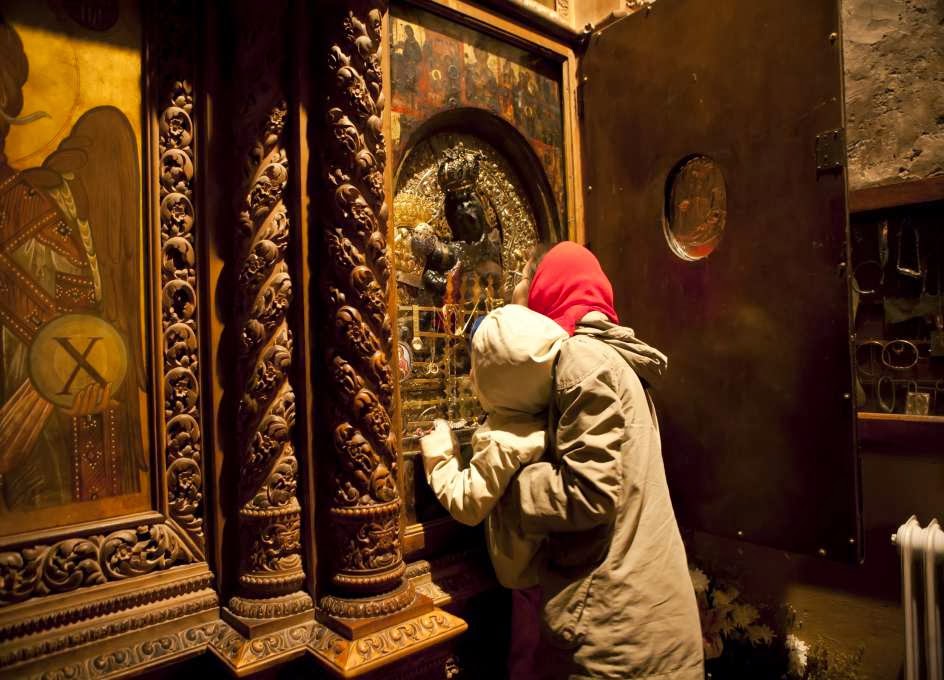 Αριστερά η θαυματουργή εικόνα της Παναγίας.