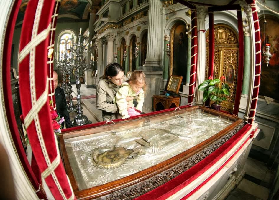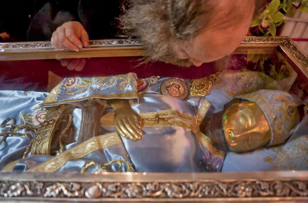 Προσκυνώντας το αδιάφθορο λείψανο του Αγίου Ιωάννου του Ρώσσου.