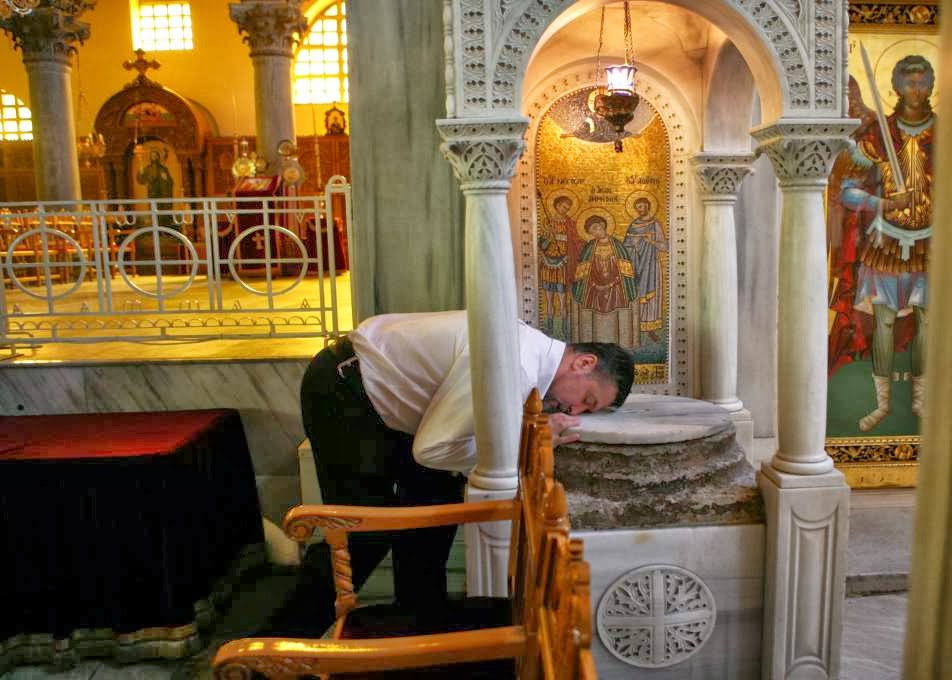 Υποκλινώμενος στον τόπο, όπου άφησε την τελευταία του πνοή ο Άγιος Μεγαλομάρτυρας Δημήτριος.