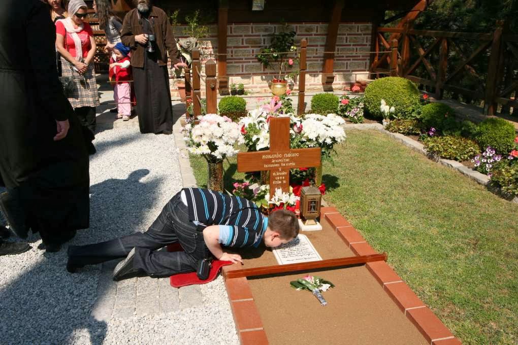 Στον τάφο του Οσίου Παϊσίου του Αγιορείτου.