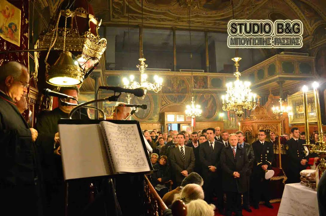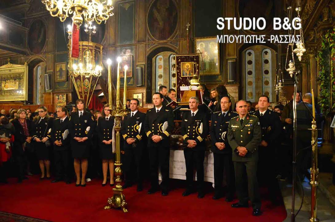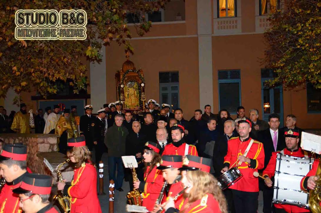Με κάθε μεγαλοπρέπεια εορτάζει το λιμενικό της πόλης Ναυπλίου τον προστάτη του Άγιο Νικόλαο στην ομώνυμη εκκλησία στο λιμάνι της πόλης . Πρόκειται για έναν μεγαλοπρεπή ναό που οικοδομήθηκε το 1713 και φέτος έκλεισε 300 χρόνια συνεχής λειτουργίας της (1713-2013), από τον προβλέπτη του ενετικού στόλου , τον Αυγουστίνο Σαγρέδο ,όπως μαρτυρά και η επιγραφή στην είσοδο του ναού .Βάση διαφόρων στοιχείων από την απογραφή που έκαναν οι Ενετοί το 1696,υπήρχαν τρεις εκκλησίες αφιερωμένες στον Άγιο Νικόλαο ,πιθανόν όταν καταστράφηκαν από τον πόλεμο των Ενετών με τους Τούρκους για την διεκδίκηση της πόλης του Ναυπλίου η εκκλησία του Αγίου Νικολάου ξαναφτιάχτηκε και πάλι από τον Σαγρέδο εκεί που είναι μέχρι και σήμερα. Ο ναός είναι τρισυπόστατος ,αφιερωμένος στον Άγιο Νικόλαο στους Αγίους Αποστόλους και στους τρείς Ιεράρχες . Το τέμπλο του και ο άμβωνας του έχουν κατασκευαστή στην Βενετία ,ενώ ο πολυέλαιος του στην Ρωσία .Στον πανηγυρικό εσπερινό χοροστάτησε ο θεοφιλέστατος επίσκοπος Επιδαύρου κ. Καλλίνικος πλαισιωμένος από ιερείς της πόλεως Ναυπλίας. Στο τέλος του πανηγυρικού εσπερινού ακολούθησε η λιτάνευση της θαυματουργής εικόνας του Αγίου ,καθώς και το τεμάχιο του ιερού λειψάνου του ,που φυλάσσεται στον ιερό ναό. Παρών οι στρατιωτικές και τοπικές αρχές της πόλεως ,πλήθος κόσμου. Μεταξύ άλλων ήταν και ο υφυπουργός πολιτισμού και αθλητισμού Γ. Αδριανός, ο δήμαρχος Ναυπλίου Δ. Κωστούρος, ο θεματικός αντιπεριφερειάρχης κ. Πουλάς, ο επικεφαλής της ελλάσωνος αντιπολίτευσης του δήμου Ναυπλίυ Χρ, Γραμματικόπουλος κα.
