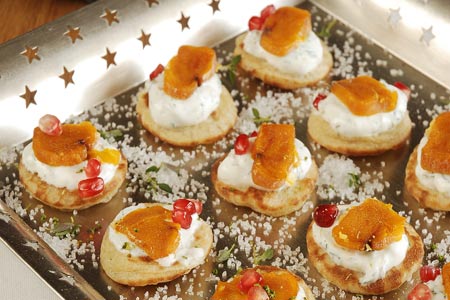 Διαδικασία Βάζουμε τα μπλινίς σε ένα ταψί και τα ζεσταίνουμε για 5 λεπτά στον φούρνο στους 180° C. Τα αφήνουμε να κρυώσουν.