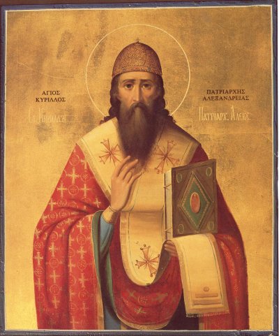 Ο Άγιος Κύριλλος έζησε επί βασιλείας Θεοδοσίου του Μικρού και γεννήθηκε στην Αλεξάνδρεια το 370 μ.Χ. από εύπορους γονείς της ελληνικής κοινωνίας της πόλεως. Ανεψιός του αρχιεπισκόπου Αλεξανδρείας Θεοφίλου ο Κύριλλος, έλαβε μεγάλη θεολογική μόρφωση, ώστε έγινε κατόπιν διάδοχος του θείου του, στον αρχιεπισκοπικό θρόνο Αλεξανδρείας.