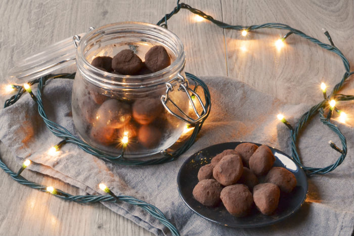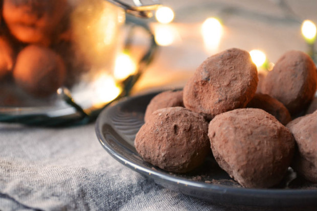 Πάρτε ένα μικρό κουταλάκι, γεμίστε το με το μίγμα της σοκολάτας και με γρήγορες κινήσεις ρολάρετέ το στις παλάμες σας, ώστε να σχηματίσετε μια μπαλίτσα. Ρίξτε τη στο κακάο, γυρίστε τη μέχρι να καλυφθεί τελείως και τοποθετήστε τη στο σκεύος σας.