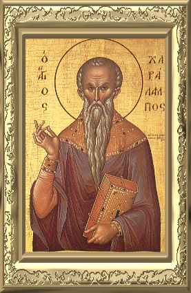 Ὡς φωστήρ ἀνέτειλας ἐκ τῆς ἑῴας, καί πιστούς ἐφώτισας, ταῖς τῶν θαυμάτων σου βολαῖς, Ἱερομάρτυς Χαράλαμπες· ὅθεν τιμῶμεν τὴν θείαν σου ἄθλησιν.