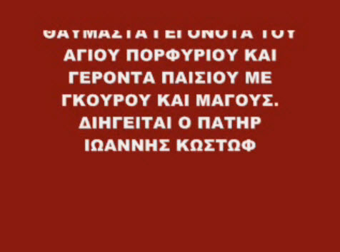 Άγ. Παΐσιος ΑγιορείτηςΑγ. Πορφύριος ΚαυσοκαλυβίτηςΘαύματα και θαυμαστά γεγονόταΟρθόδοξη πίστηΠολυμέσα - Multimedia