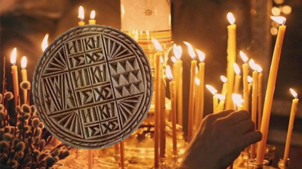 Το σχέδιο του Προσφόρου περιέχει επίσης τη μερίδα της Παναγίας με τα γράμματα Μ και Θ, δηλ. Μήτηρ Θεού.