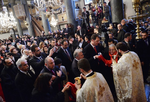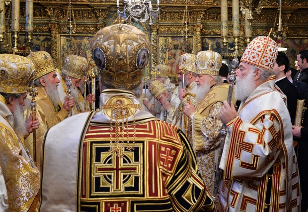 Του λαμπρού συλλείτουργου προεξήρχε ο Οικουμενικός Πατριάρχης κ. Βαρθολομαίος, ενώ συλλειτούργησαν οι Πατριάρχες Αλεξανδρείας Θεόδωρος, Ιεροσολύμων Θεόφιλος, Μόσχας και Πασών των Ρωσιών Κύριλλος, Σερβίας Ειρηναίος, Ρουμανίας Δανιήλ, Βουλγαρίας Νεόφυτος, Γεωργίας Ηλίας και οι Αρχιεπίσκοποι Κύπρου Χρυσόστομος, Αθηνών και Πάσης Ελλάδος Ιερώνυμος, Πολωνίας Σάββας και Αλβανίας Αναστάσιος.