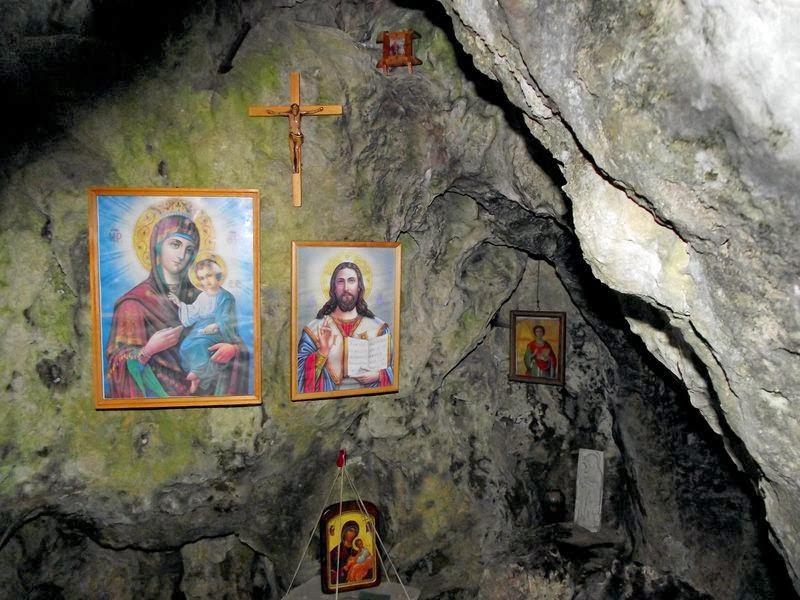 Μετά πολλήν πορεία και κούραση, βαδίζοντας συνεχώς στα σπασμένα από τους κεραυνούς βράχια, είδαμε ένα σημείο που έμοιαζε με δρομάκι. Δηλαδή επάνω στα βραχάκια υπήρχαν σημάδια από το πέρασμα κάποιου ανθρώπου. Ακολουθήσαμε προσεκτικά το υποτυπώδες δρομάκι, βαδίσαμε αρκετά με κομμένη την αναπνοή και αμίλητοι. Μετά την αγωνιώδη πορεία, ευρήκαμε μετά πολλής χαράς και συγκινήσεως το κατάλυμα ενός ασκητού. ‘Ένα σπήλαιο, μερικά ξύλα διά κάθισμα και κρεβάτι, άλλα φρεσκοκομμένα ξύλα, ένα πήλινο δοχείο με νερό, και παξιμάδια, πολύ ξερά κομμάτια ψωμιού.