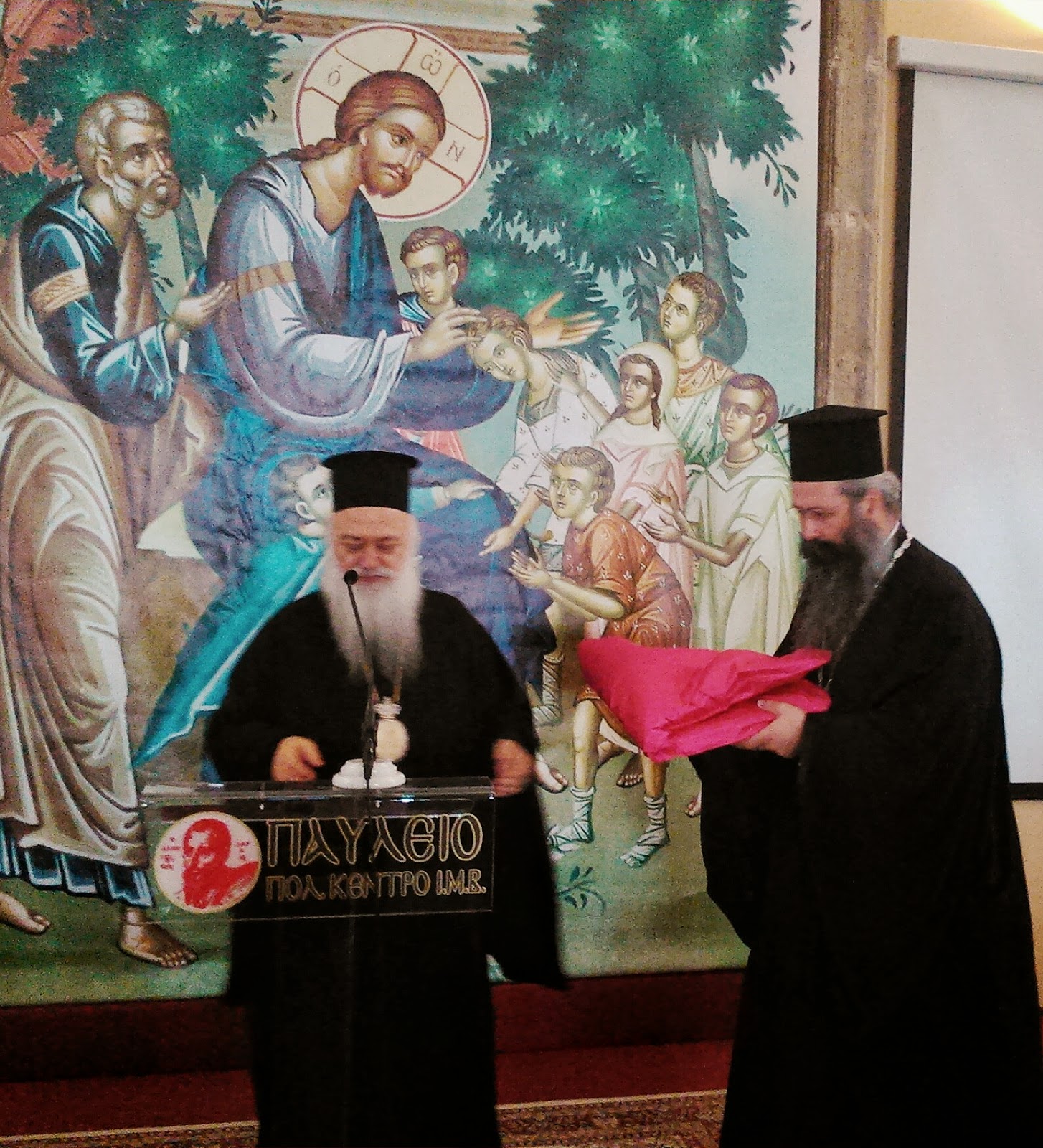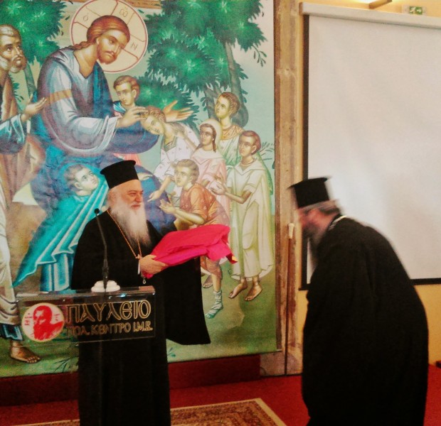 Ο Σεβασμιώτατος Μητροπολίτης Βεροίας, Ναούσης και Καμπανίας κ. Παντελεήμων ανοίγοντας την ιερατική σύναξη, αναφέρθηκε στο ενοριακό-ποιμαντικό και διοικητικό έργο του Σεβασμιωτάτου Μητροπολίτου Κίτρους και Κατερίνης όταν ήταν κληρικός της Μητροπόλεως Βεροίας και του χάρισε έναν αρχιερατικό μανδύα αλλά και ένα αρχιερατικό εγκόλπιο το οποίο ήταν του μακαριστού Μητροπολίτου Θεσσαλονίκης κυρού Παντελεήμονος του Β’, ο οποίος το είχε χαρίσει στον ίδιο μετά την χειροτονία του εις επίσκοπον.