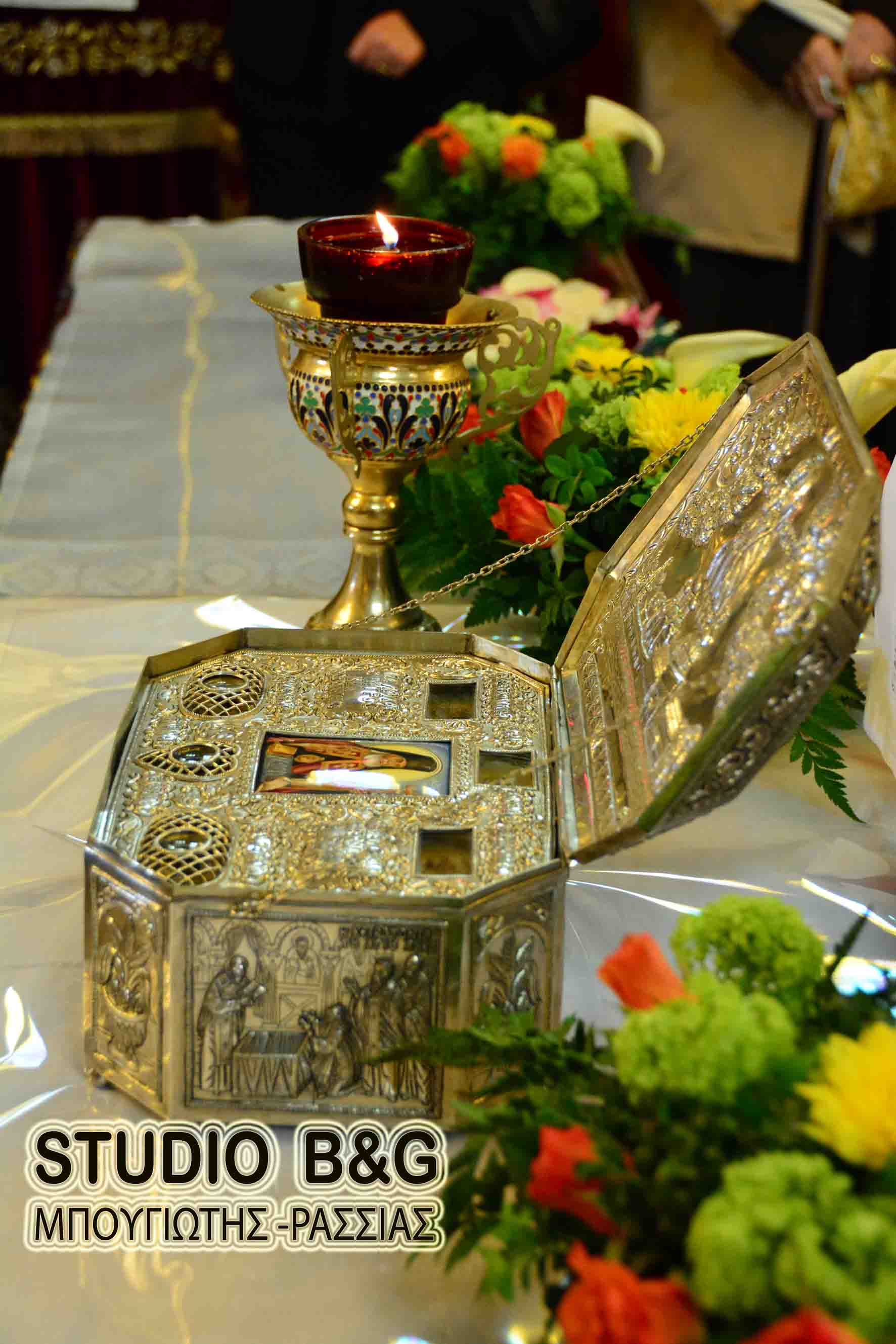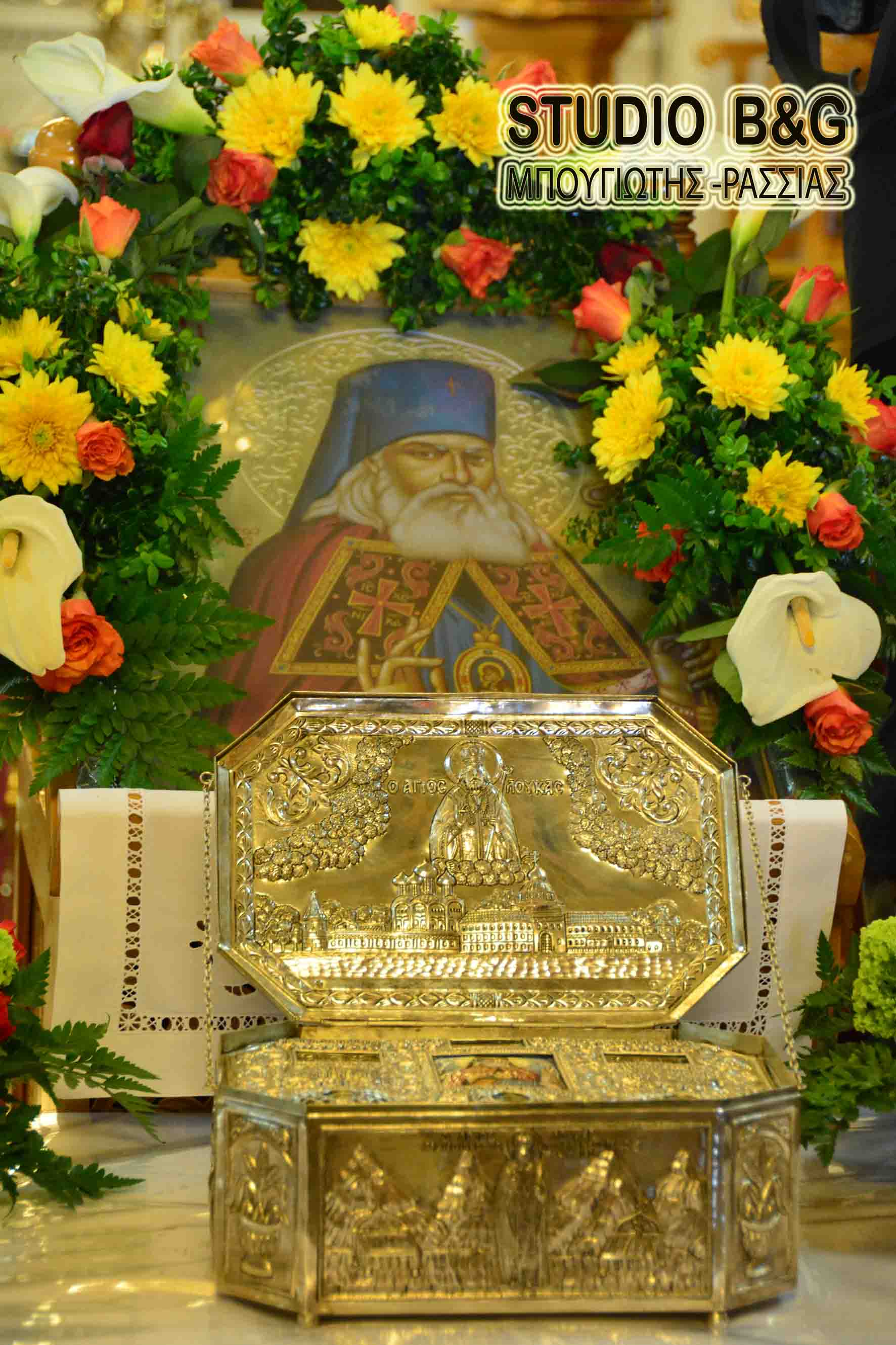 Τμήμα ιερού λειψάνου του Αγίου Λουκά στον Ναό Ευαγγελίστριας Ναυπλίου