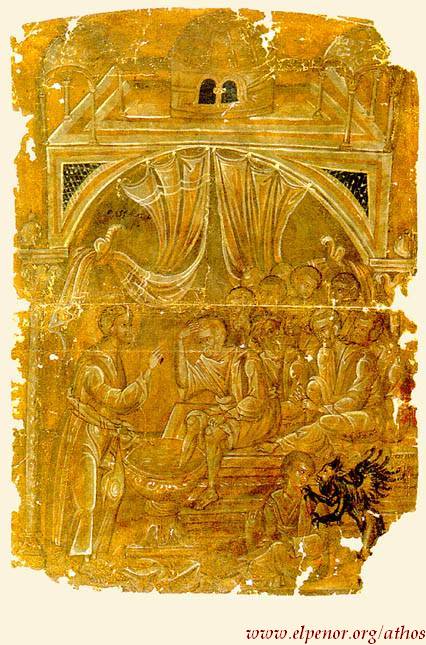 Ὅτε οἱ ἔνδοξοι Μαθηταί, ἐν τῷ νιπτῆρι τοῦ Δείπνου ἐφωτίζοντο, τότε Ἰούδας ὁ δυσσεβής, φιλαργυρίαν νοσήσας ἐσκοτίζετο, καὶ ἀνόμοις κριταῖς, σὲ τὸν δίκαιον Κριτὴν παραδίδωσι. Βλέπε χρημάτων ἐραστά, τὸν διὰ ταῦτα ἀγχόνῃ χρησάμενον, φεῦγε ἀκόρεστον ψυχὴν τὴν Διδασκάλῳ τοιαῦτα τολμήσασαν. Ὁ περὶ πάντας ἀγαθός, Κύριε δόξα σοι.