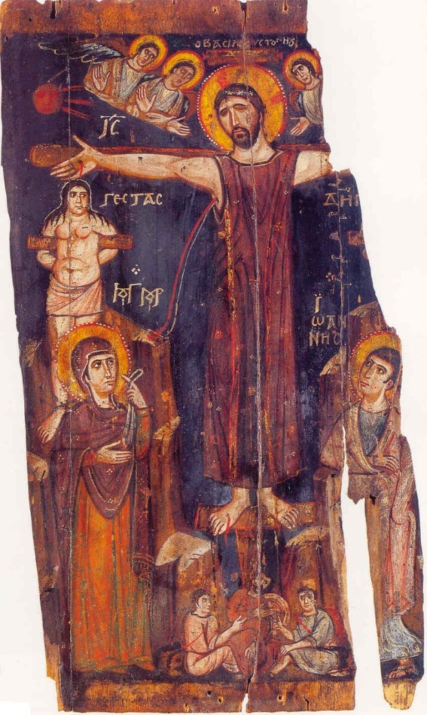 Είναι μία πολύ σημαντική εικόνα που επέζησε από τους αποκαλούμενους «σκοτεινούς αιώνες» του Βυζαντίου και η αρχαιότερη που εικονίζει τον Χριστό νεκρό και με ακάνθινο στέφανο, και όπου αναγράφονται τα ονόματα των δύο συσταυρωθέντων ληστών «Γέστας» και «Δήμας», γνωστά από την απόκρυφη καινοδιαθηκική παράδοση.