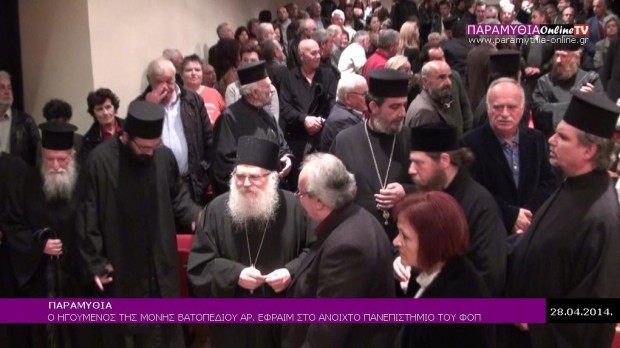 Εντυπωσιακή κοσμοσυρροή επικράτησε το βράδυ της Δευτέρας στην Παραμυθιά και στο Ανοιχτό Πανεπιστήμιο του ΦΟΠ, όπου καλεσμένος ήταν ο Καθηγούμενος της Ιεράς Μεγίστης Μονής Βατοπεδίου Αρχιμανδρίτης Γέροντα Εφραίμ.