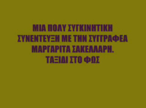 Μια πολύ συγκινιτική συνέντευξη με την συγγραφέα Μαργαρίτα Σακελλάρη.Ταξίδι στο φως.Μια μαρτυρία ελπίδας στη σκιά της δοκιμασίας. Πηγή: apantaortodoxias. blogspot.gr