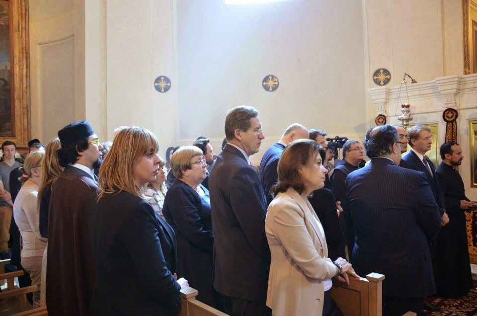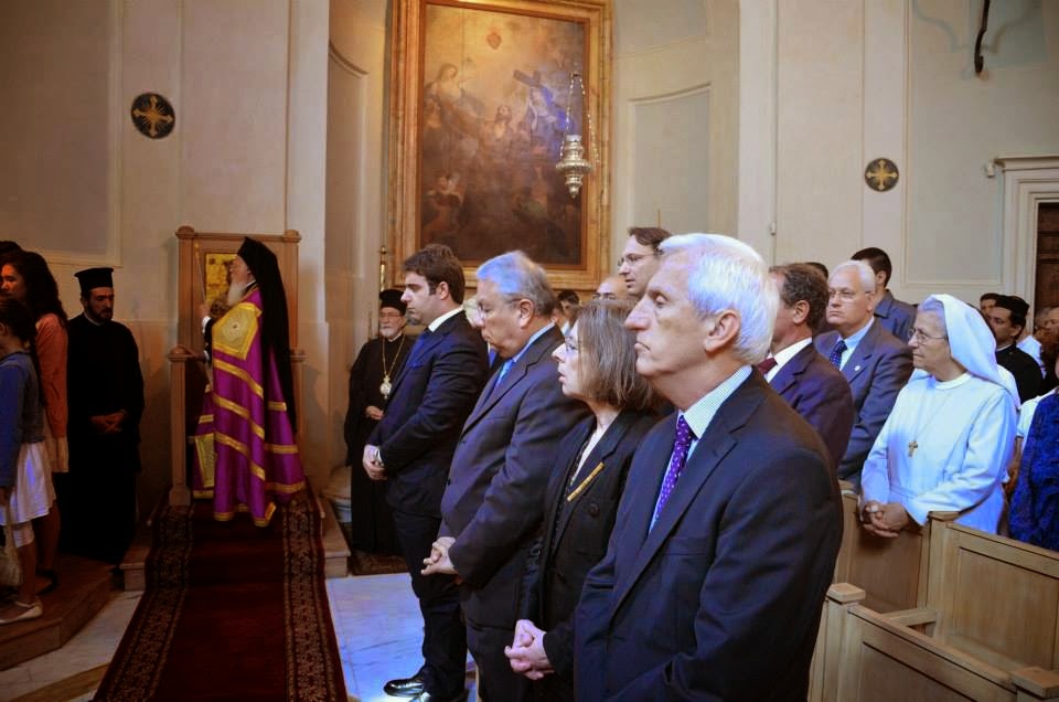Επίσης παρέστησαν ο π. Ανδρέας Παλμιέρι, υπογραμματεύς του Ποντιφικού Συμβουλίου για την Ενότητα των Χριστιανών, οι Πρέσβεις της Ελλάδος στην Ιταλία και στο Βατικανό, ο Πρέσβης της Κύπρου στο Βατικανό, δεκατέσσερις Πρέσβεις (μεταξύ των οποίων και της Τουρκίας), Άρχοντες του Θρόνου και πλήθος πιστών. Την Θεία Λειτουργία τέλεσε ο πρωτοσύγκελλος της Ιεράς Μητροπόλεως Ιταλίας και Μελίτης, Αρχιμ. Ευάγγελος Υφαντίδης και διάκονος ήταν ο π. Ιωακείμ, υπογραμματεύς της Αγίας και Ιεράς Συνόδου του Οικουμενικού Πατριαρχείου. Τελετάρχης ήταν ο Αρχιμ. Συμεών Κάτσινας, ιερατικώς προϊστάμενος του Ναού του Αγίου Θεοδώρου Ρώμης.