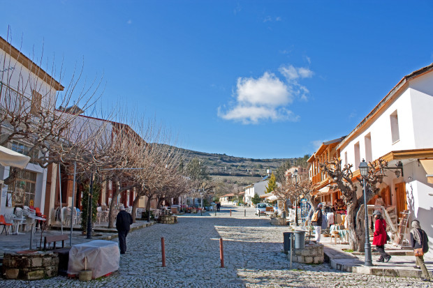Η καλύτερη ώρα είναι λίγο μετά τις 7 το απόγευμα. Να είσαι στην πλατεία, μπροστά απ’ το μοναστήρι του Τιμίου Σταυρού. Κοιτάζοντας προς τα πίσω θα δεις έναν φλεγόμενο ήλιο να κάνει βουτιά και να φωτίζει με το πορτοκαλοκόκκινο χρώμα του το χωριό και την πλατεία. Απ’ εδώ να πάρεις λουκουμάδες. Αν θέλεις να φας, να πας Στου Κυρ Γιάννη (25422100). Ρώτα, όλοι τον ξέρουν το εστιατόριο της πλατείας, θα το βρεις εύκολα. Δεν μπορείς να φύγεις απ’ το χωριό, αν δεν δοκιμάσεις τα «αρκατένα» τα ψωμιά και παξιμάδια που φτιάχτηκαν εδώ για πρώτη φορά πριν από ένα αιώνα.