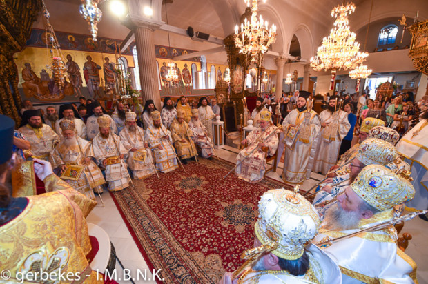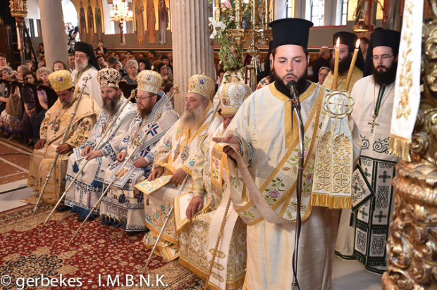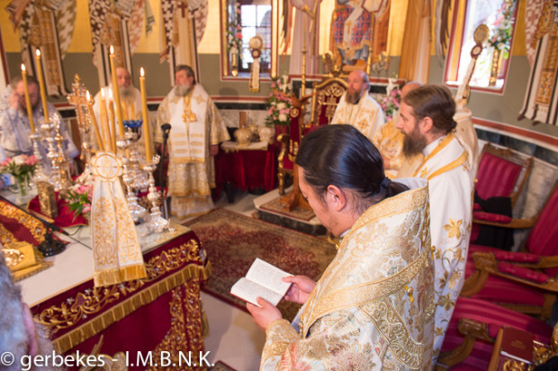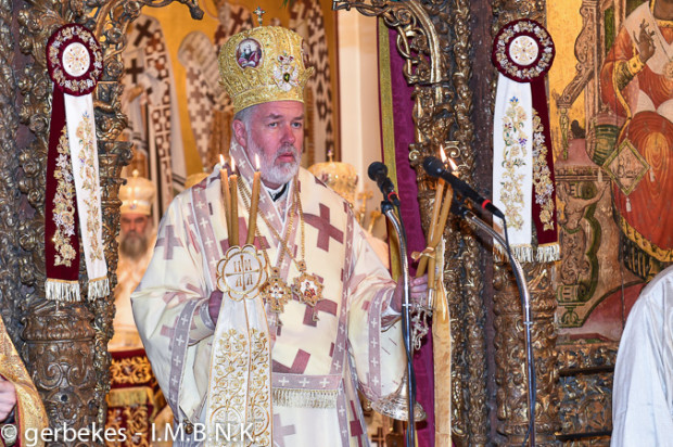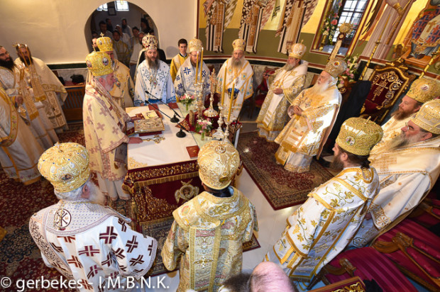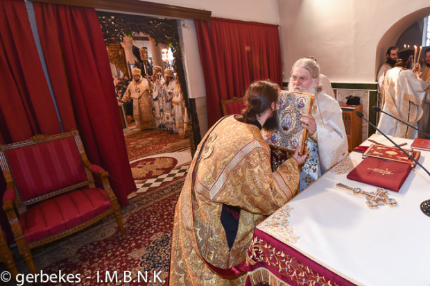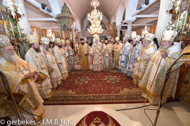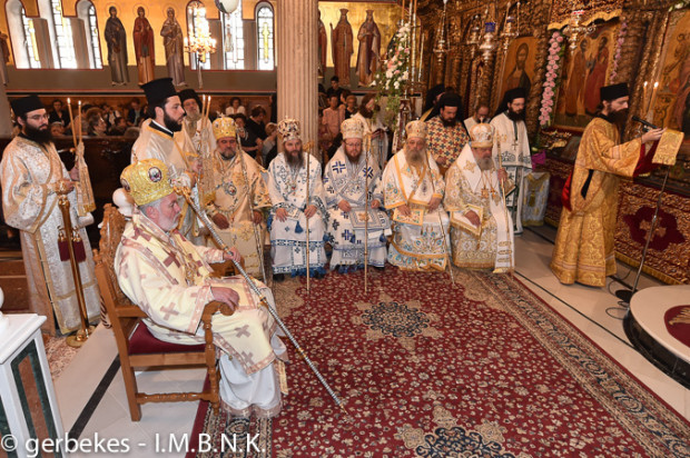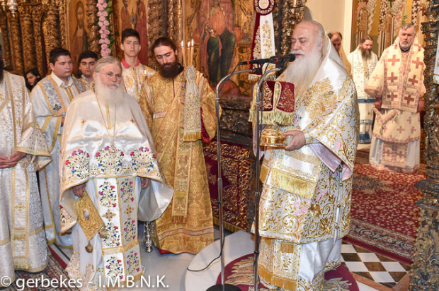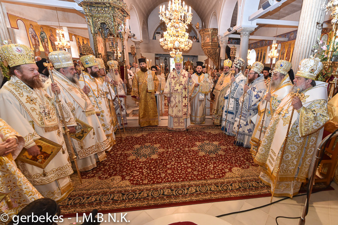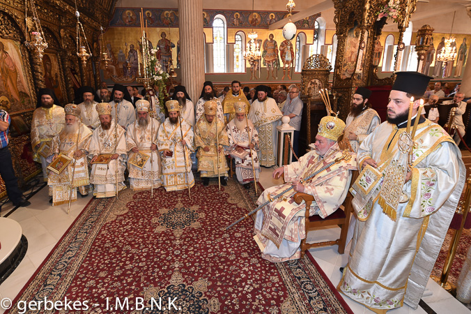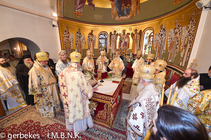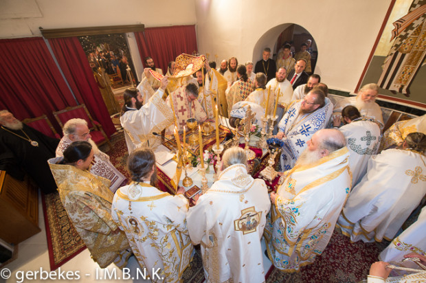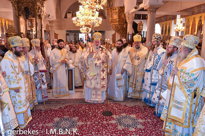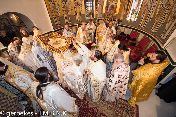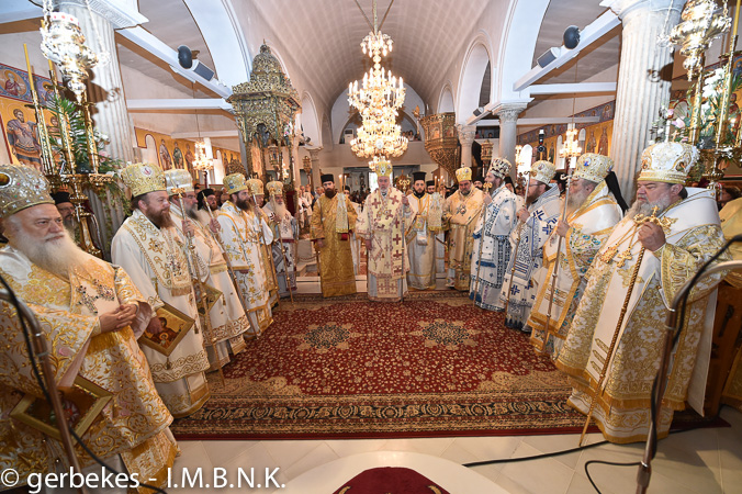 Στον όρθρο χοροστάτησε ο σεβασμιώτατος Βελγίου κ. Αθηναγόρας, εκπρόσωπος του Οικουμενικού Πατριαρχείου, ο οποίος στη συνέχεια προεξήρχε της πολυαρχιεαρτικής θείας Λειτουργίας.