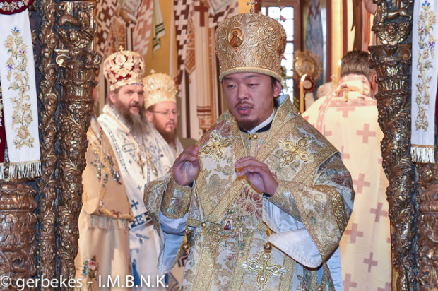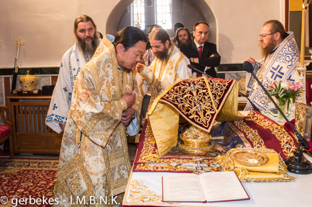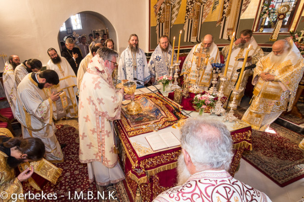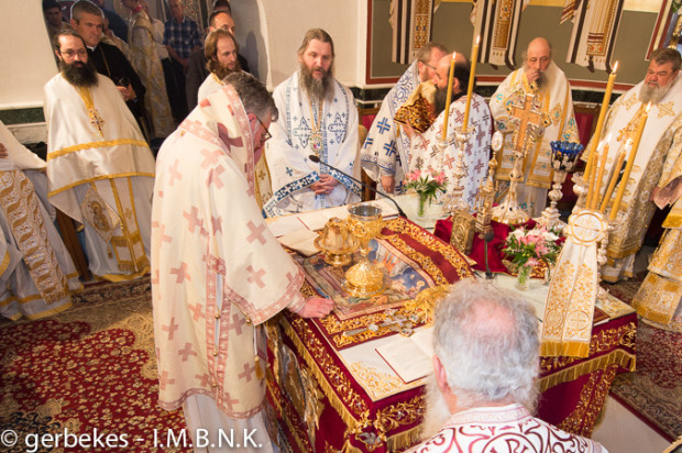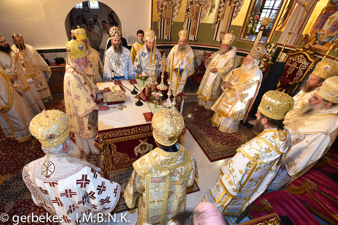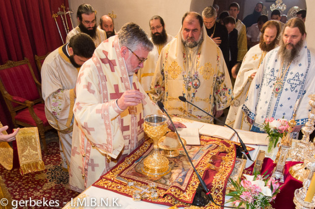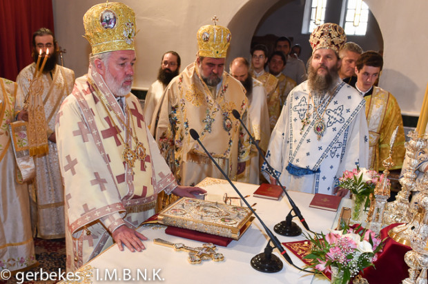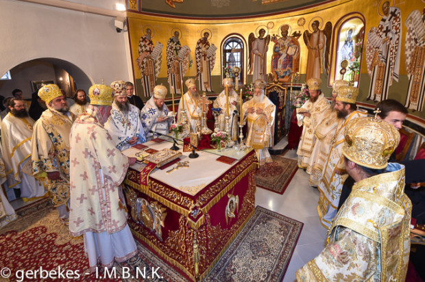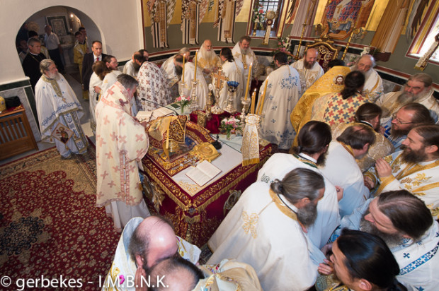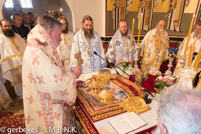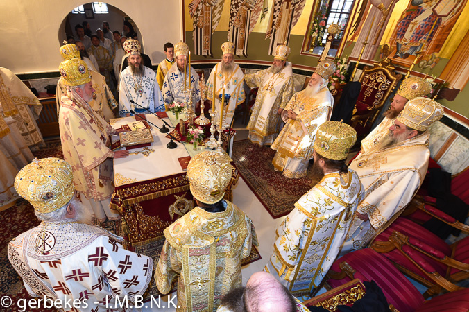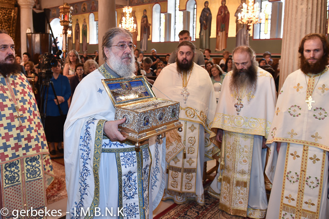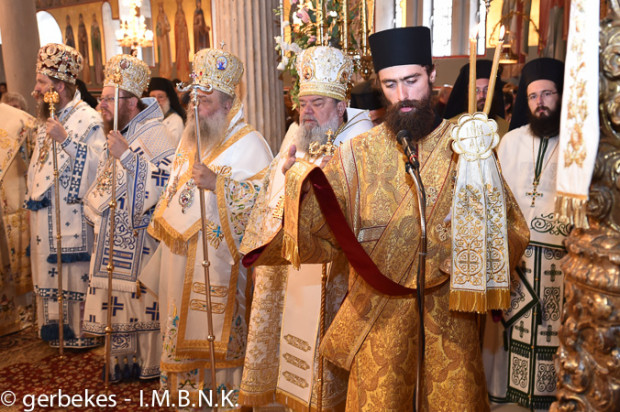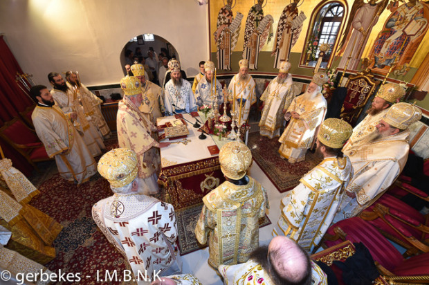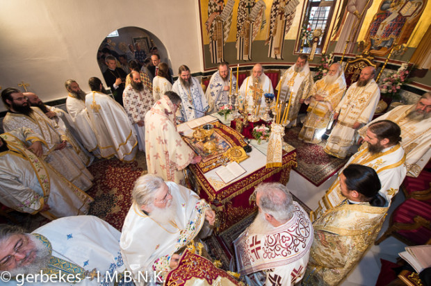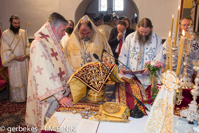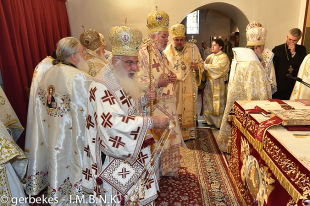 Στον όρθρο χοροστάτησε ο σεβασμιώτατος Βελγίου κ. Αθηναγόρας, εκπρόσωπος του Οικουμενικού Πατριαρχείου, ο οποίος στη συνέχεια προεξήρχε της πολυαρχιεαρτικής θείας Λειτουργίας.