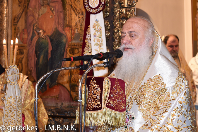 Το απόγευμα της παραμονής στον πανηγυρικό εσπερινό χοροστάτησε ο σεβασμιώτατος Μητροπολίτης Παροναξίας κ. Καλλίνικος, ενώ το θείο λόγο κήρυξε ο πανοσιολογιώτατος Καθηγούμενος της Ιεράς Μονής Βατοπαιδίου αρχιμ. Εφραίμ.