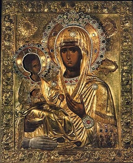 Αυτή καθευατή η Αγία Εικόνα είναι η πλέον άριστα διατηρημένη παλαιά Βυζαντινή Εικόνα της Θεοτόκου. Το πρόσωπο της Μητέρας του Θεού είναι τόσο παραστατικό και το βλέμμα Της τόσο γλυκή, ώστε προκαλεί μεγάλο δέος και συγκίνηση όσοι την προσκυνούν. Η Εικόνα για λόγους προστασίας και μεγαλοπρέπειας φέρει ένα χρυσό επικάλυμμα-πουκάμισο- πάνω στο οποίο είναι επικολλημένοι πέντε χιλιάδες πολύτιμοι λίθοι.