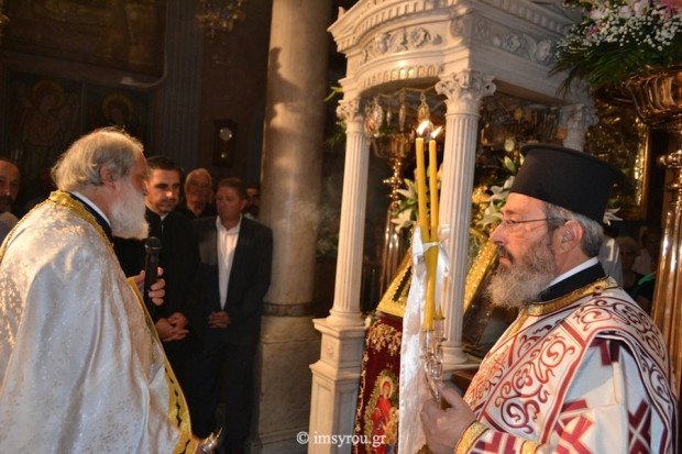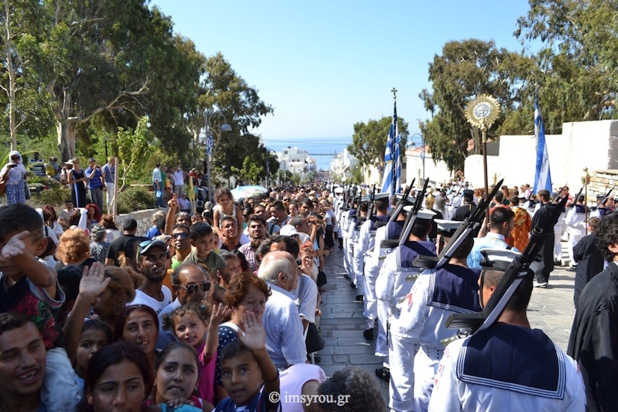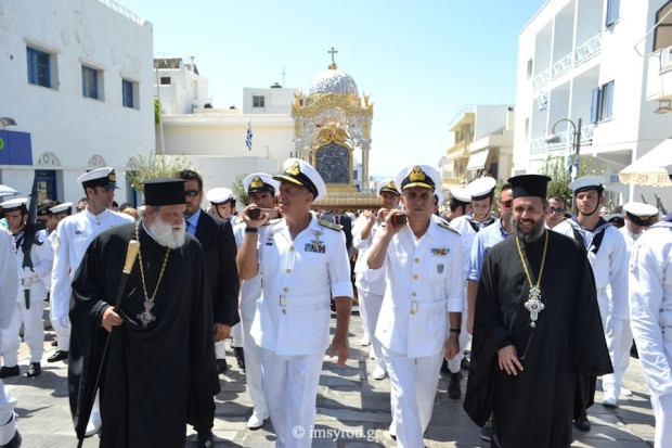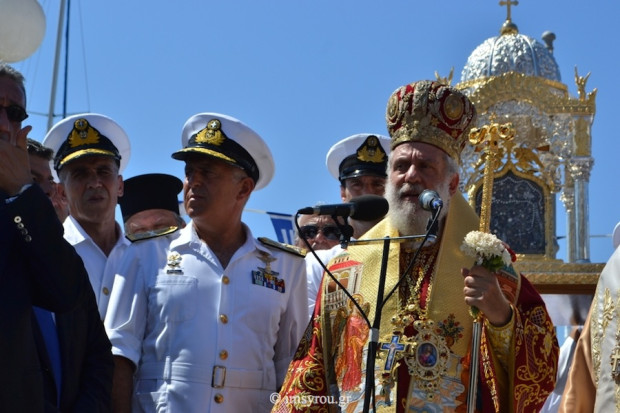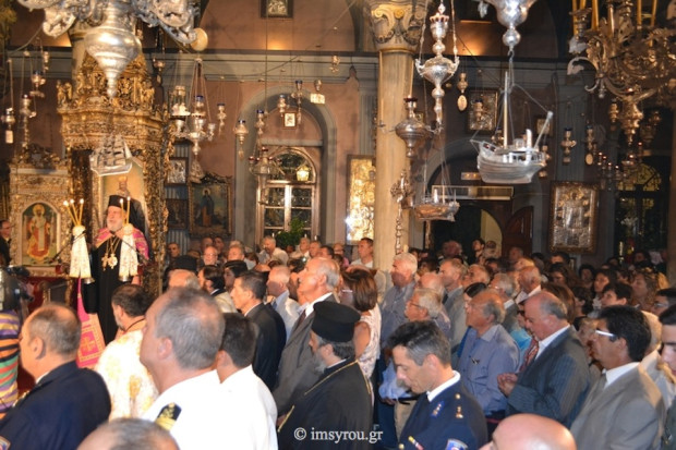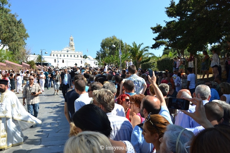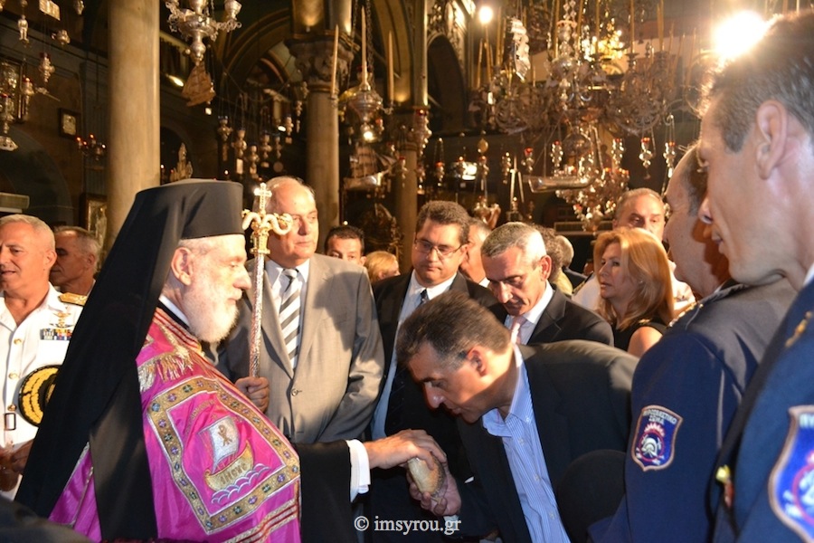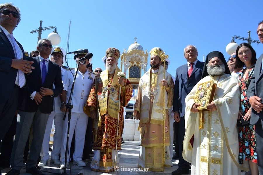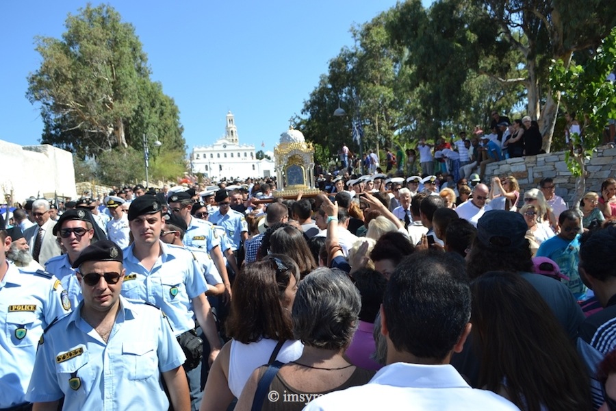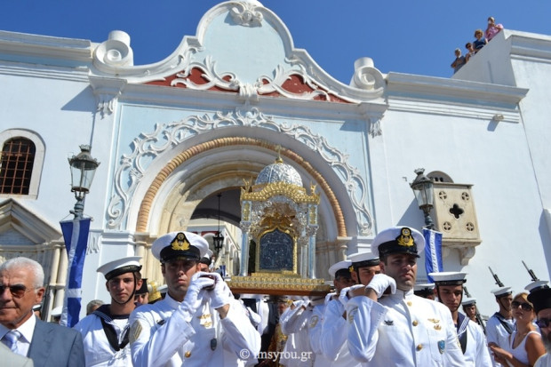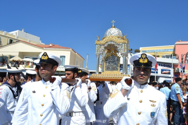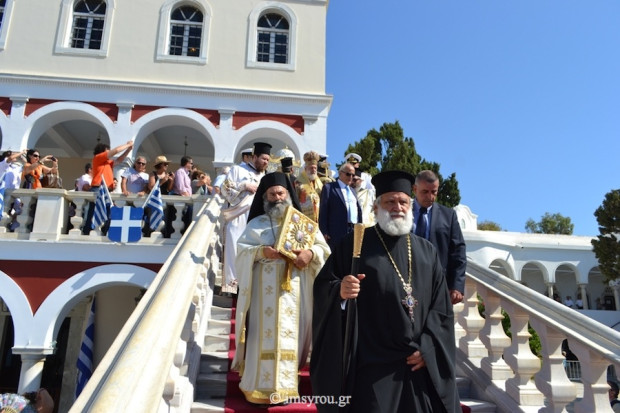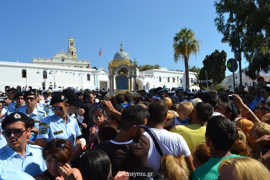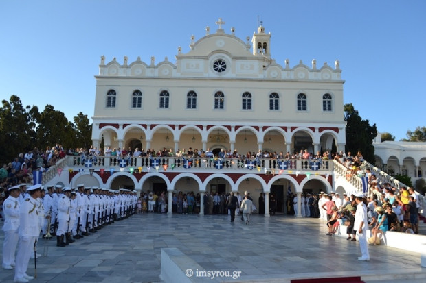 Με τη συμμετοχή χιλιάδων λαού από την Ελλάδα και το εξωτερικό, το ιερό νησί της Τήνου τίμησε τη μεγάλη Θεομητορική Εορτή της Κοιμήσεως της Θεοτόκου, παρουσία του εκπροσωπούντος την Κυβέρνηση Γ. Γραμματέα Αποκεντρωμένης Διοίκησης, των Ενδοξωτάτων Αρχηγών του ΓΕΝ και του Λιμενικού Σώματος, εκπροσώπων του Στρατού και των Σωμάτων Ασφαλείας, καθώς και των τοπικών Αυτοδιοικητικών Αρχών.