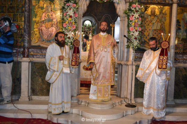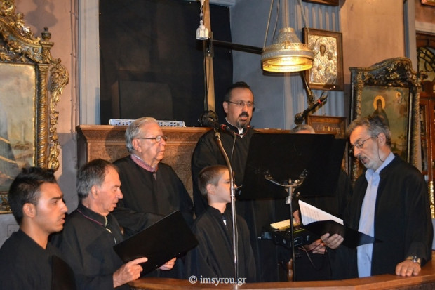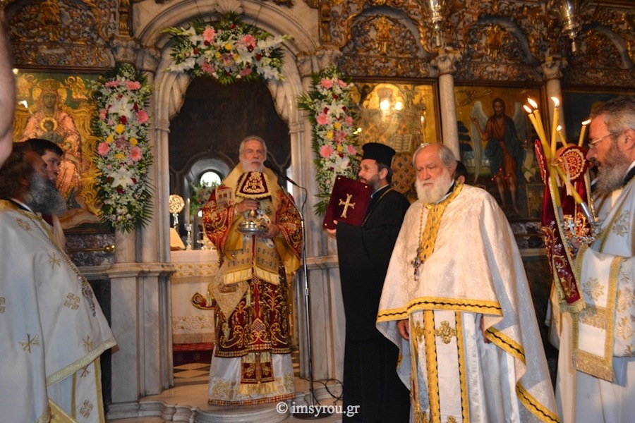 Το απόγευμα, στον πανίερο Ναό της Ευαγγελιστρίας τελέσθηκε Μέγας Δισαρχιερατικός Εσπερινός, χοροστατούντων του Σεβασμιωτάτου κ. Δωροθέου Β’ και του Θεοφιλεστάτου Επισκόπου Μπρανζαβίλ κ. Παντελεήμονος, με τη συμμετοχή του Ιεροκήρυκος του Καθεδρικού Ναού Αθηνών Αρχιμ. Χρυσόστομου Παπαθανασόπουλου, του Πρωτοπρ. Θωμά Συνοδινού και Κληρικών από την Τήνο και άλλα μέρη της Ελλάδος, παρουσία του εκπροσωπούντος την Κυβέρνηση Γ. Γραμματέα Αποκεντρωμένης Διοίκησης, των Ενδοξωτάτων Αρχηγών ΓΕΝ και Λιμενικού Σώματος, εκπροσώπων του Στρατού και των Σωμάτων Ασφαλείας, του απερχομένου και του νεοεκλεγέντος Δημάρχου Τήνου, Περιφερειακών και Δημοτικών Συμβούλων, Εκπαιδευτικών και χιλιάδων πιστού λαού.