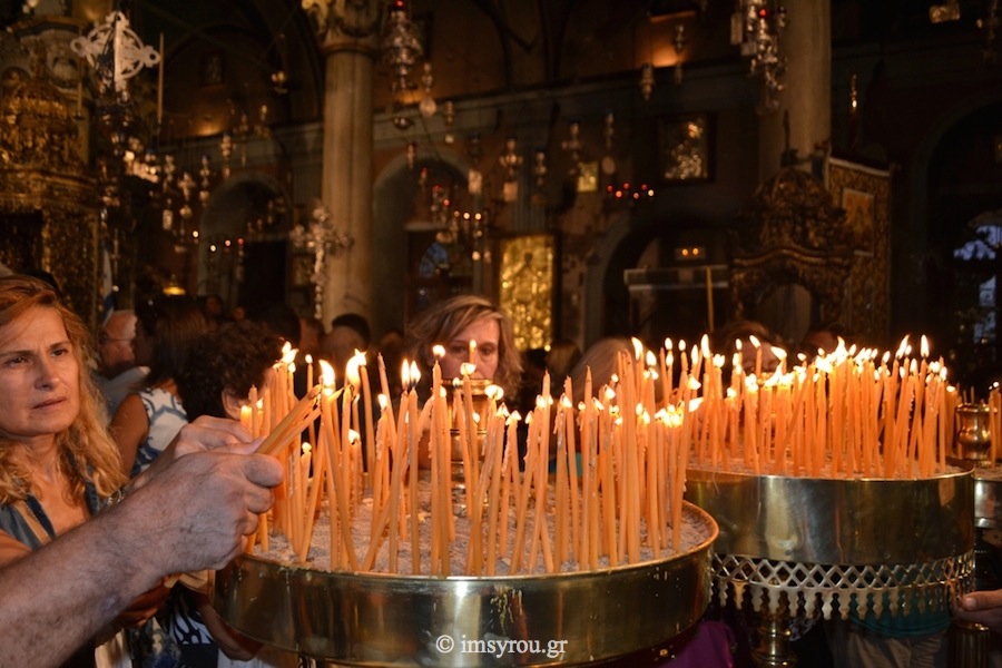 Με ιδιαίτερη λαμπρότητα, κατάνυξη και συρροή χιλιάδων προσκυνητών από την Ελλάδα και όλο τον κόσμο η ιερά νήσος Τήνος εορτάζει τη μεγάλη Θεομητορική εορτή της Κοιμήσεως της Θεοτόκου