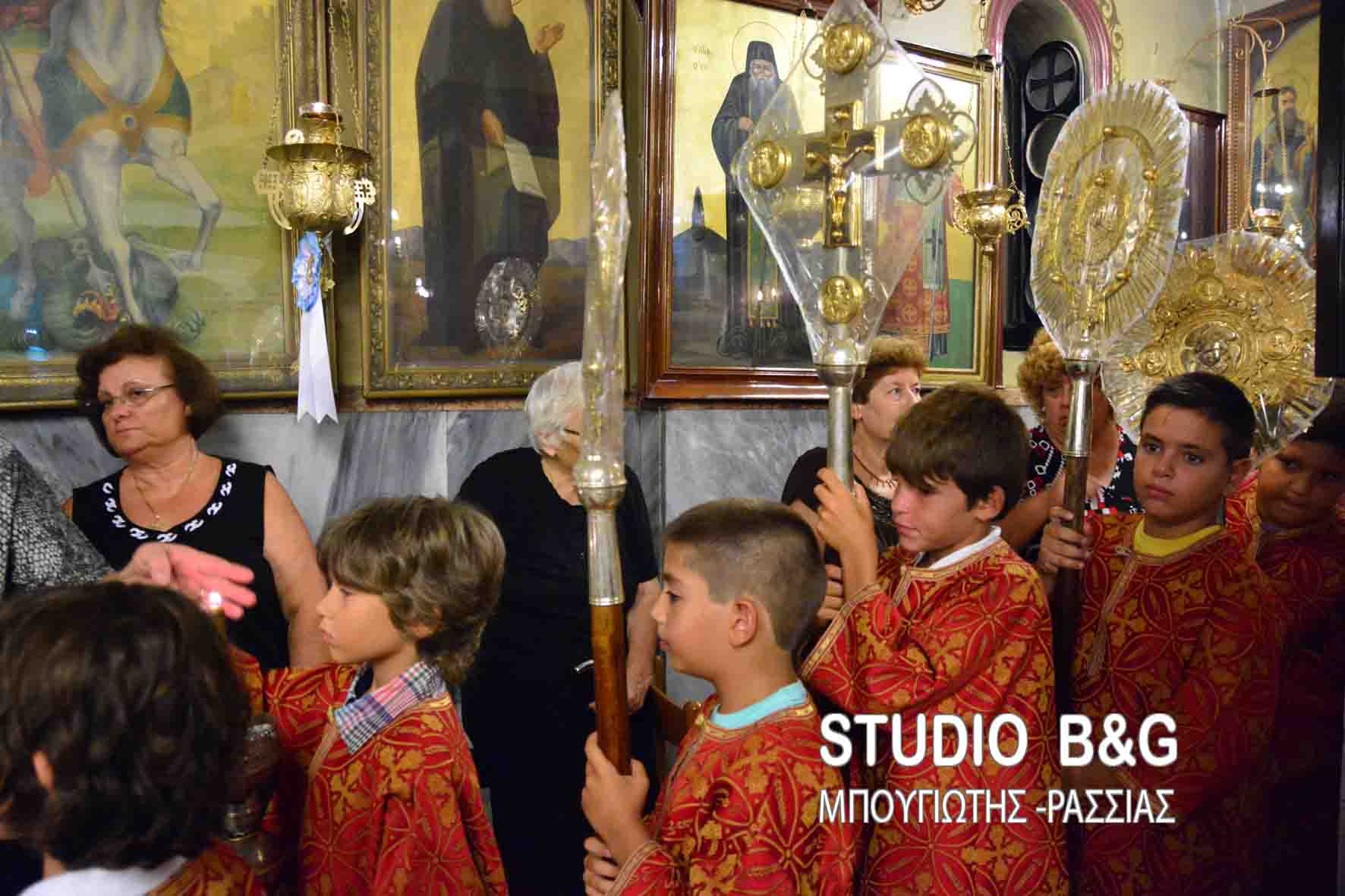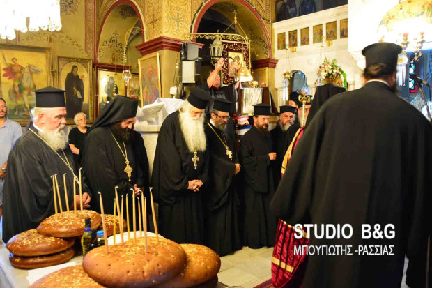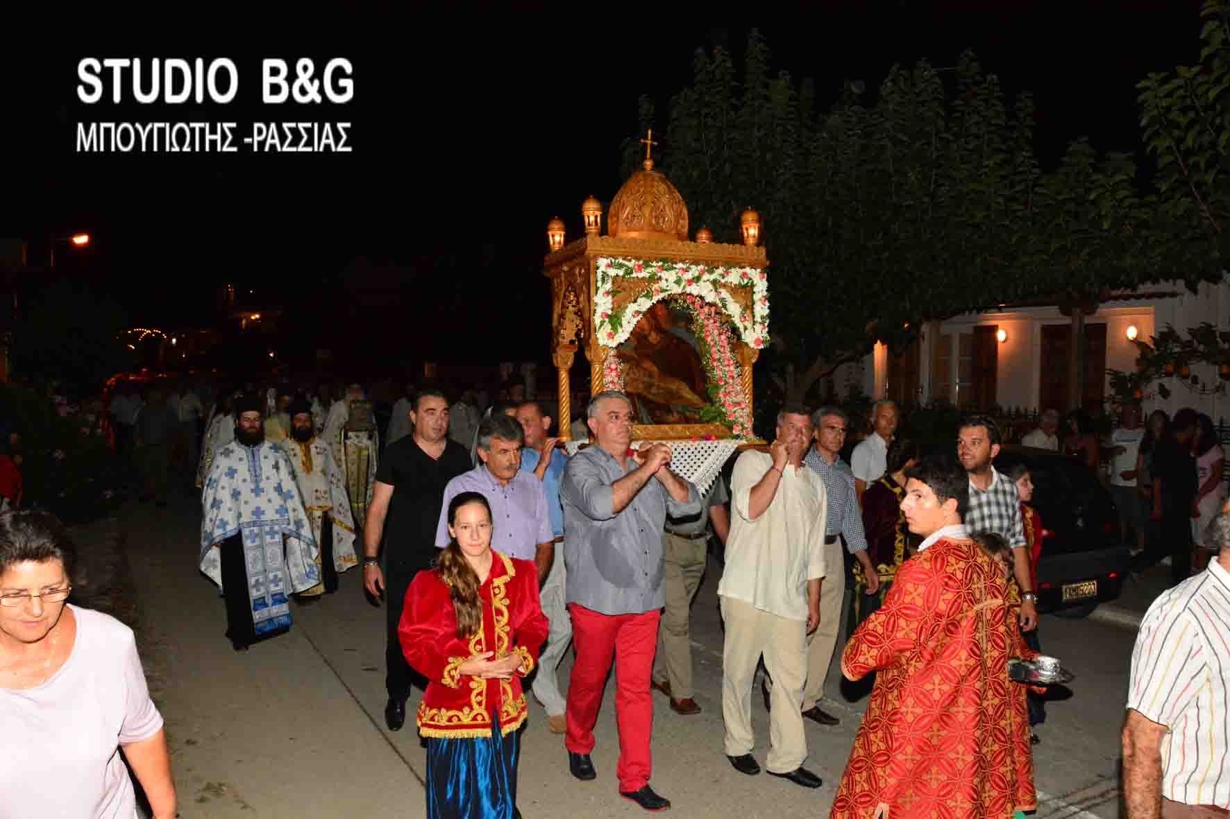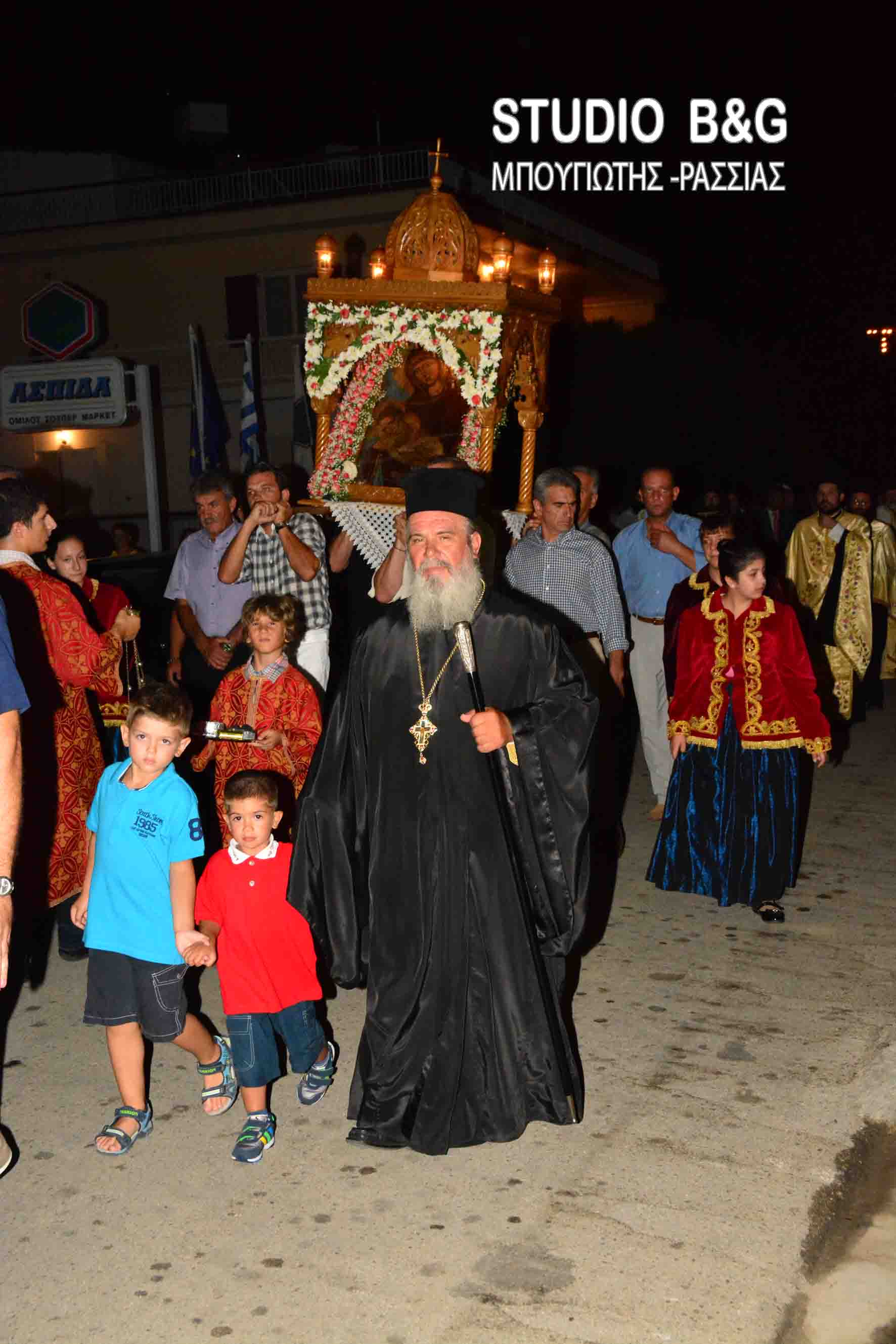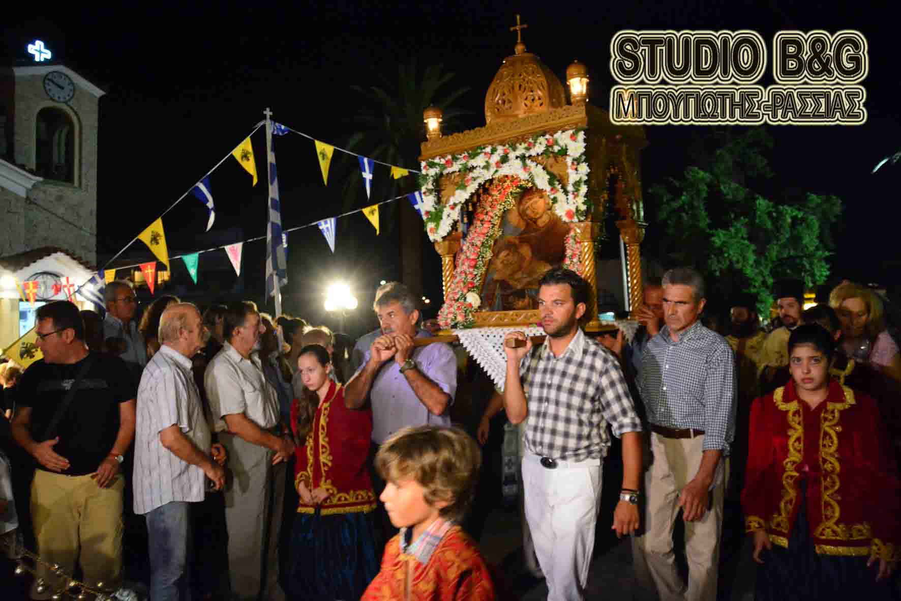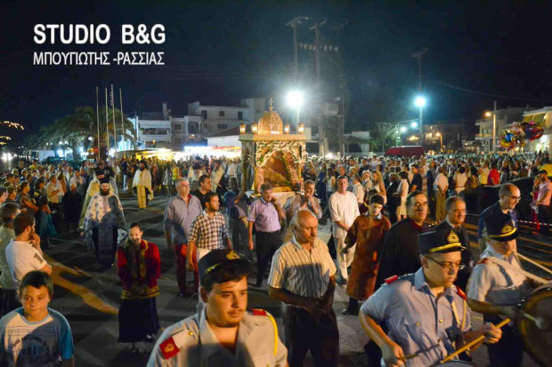 Την παραμονή της Εορτής, Παρασκευή 22 Αυγούστου εψάλη Μέγας Πανηγυρικός Αρχιερατικός εσπερινός, μετ” Αρτοκλασίας, χοροστατούντος του Θεοφιλεστάτου Επισκόπου Επιδαύρου,  Καλλινίκου, βοηθού Επισκόπου της Ιεράς Μητροπόλεως Αργολίδος. Μετά το πέρας του εσπερινού ακολούθησε  η λιτάνευση της θαυματουργού Ιεράς Εικόνος της «Θεομάνας» παιανιζούσης της Φιλαρμονικής της Νέας Κίου. Ο μήνας Αύγουστος είναι αφιερωμένος κατ’ εξοχήν στην Παναγία μας. Θεωρείται το Πάσχα του καλοκαιριού. Η Παναγία μας τιμάται ιδιαίτερα από ολόκληρο τον ορθόδοξο χριστιανικό κόσμο. Κατά την Ιερά Πανήγυρη συρρέει πλήθος ανθρώπων προκειμένου να προσκυνήσουν την θαυματουργό Ιερά Εικόνα της Θεομάνας η οποία έχει μεταφερθεί από την Παλαιά Κίο της Μικράς Ασίας μαζί με άλλες τρείς εικόνες ή οποίες ήρθαν στην Ελλάδα μετά την καταστροφή της Μικράς Ασίας από τους Τούρκους. Η εικόνα αυτή είναι βυζαντινής τεχνοτροπίας, χαρακτηριστικό της είναι ότι είναι δεξιοκρατούσα και είναι έργο του 12ου αιώνος. Μεγάλη τιμή και ευλάβεια αποδίδουν στην Παναγία οι κάτοικοι της Νέας Κίου αλλά και όλοι οι χριστιανοί της γύρω περιοχής, καθώς και οι απανταχού Κιώτες σε κάθε σημείο της Γής. Φέτος τον πανηγυρικό εσπερινό παρακολούθησαν, ο υπουργός ΠΕΚΑ  Ι. Μανιάτης , ο Υφυπουργός πολιτισμού και αθλητισμού  Γ. Ανδριανός ,ο πολιτευτής Β. Σιδέρης ,το Δημοτικό Συμβούλιο του δήμου Άργους Μυκηνών ,φορείς του Νομού , οι στρατιωτικές αρχές του Δήμου κα. Παρών στο εορτασμό της Θεομάνας κι ο πρόεδρος του ΙΣΚΕ πατέρας Γεώργιος Σελλής.