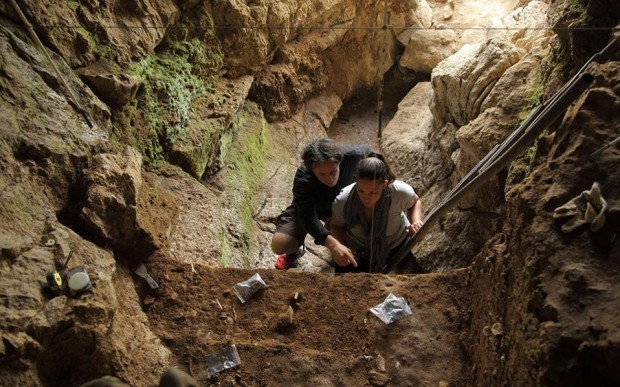 Η Κατερίνα Δούκα και ο Τόμας Χάινχαμ συλλέγουν δείγματα απο μία σπηλιά στην Ρωσία. (Φωτογραφία: Thomas Higham ).