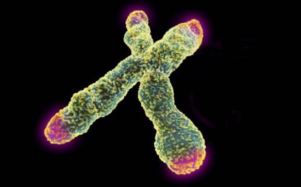 Τα τελομερή (κόκκινο) είναι δομές στα άκρα των χρωμοσωμάτων που εμποδίζουν τη φθορά του DNA. Όσο μακρύτερα, τόσο καλύτερα