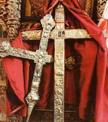 •Ο Μεγάλος Σταυρός με τον Άγιο Κάνναβο. Είναι ένας ξύλινος Σταυρός με αργυρεπίχρυσο κάλυμμα, που είναι τοποθετημένος σε ειδικό κουβούκλιο στο τέμπλο του ναού. Την επιφάνεια του κοσμούν διάφορες παραστάσεις από τη ζωή του Χριστού. Στα τέσσερα άκρα του Σταυρού είναι οι τέσσερις Ευαγγελιστές. Στο κέντρο του Σταυρού, μέσα σε χώρο που προφυλάσσεται με χρυσή θυρίδα που ανοιγοκλείει βρίσκεται ο ΑΓΙΟΣ ΚΑΝΝΑΒΟΣ που ονομάζεται και ΑΓΙΟ ΣΧΟΙΝΙΟ. Είναι ένα κομμάτι από εκείνο το σχοινί που οι Ρωμαίοι έδεσαν τον Χριστό πάνω στο Σταυρό και είναι το μοναδικό που σώζεται στο κόσμο.