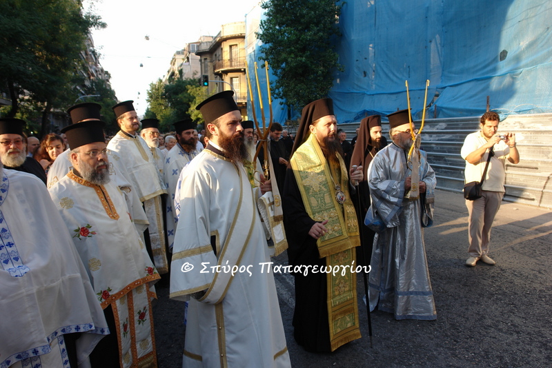 Το Τίμιο Ξύλο, το οποίο εκόμισε ο εκπρόσωπος της Ιεράς Μονής, Πανοσιολογιώτατος Αρχιμανδρίτης π. Φιλόθεος, υποδέχτηκε ο εκπρόσωπος του Μακαριωτάτου Αρχιεπισκόπου, Θεοφιλέστατος Επίσκοπος Σαλώνων Αντώνιος, στη συμβολή των οδών Αχαρνών και Χέϋδεν.