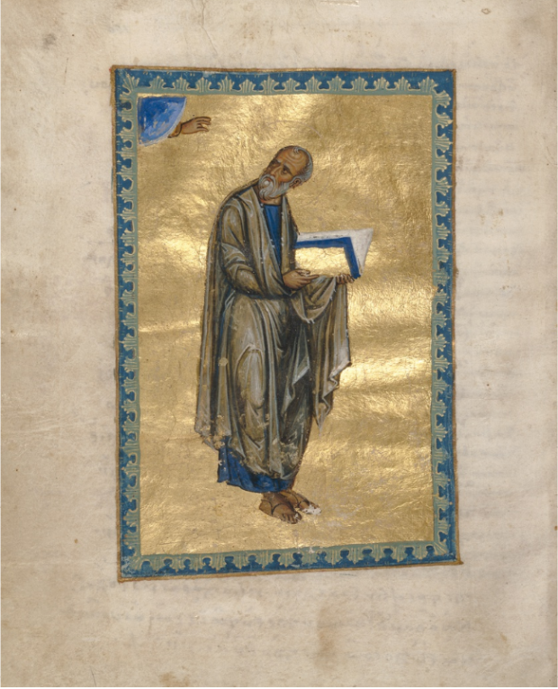 Μια πέμπτη ολοσέλιδη μικρογραφία (βλέπε φωτ.), με προτομές των δώδεκα Αποστόλων, είχε αποσπαστεί και περιέλθει στη Συλλογή Π. Κανελλοπούλου, στην Αθήνα. Μέχρι πρόσφατα φυλασσόταν στο Μουσείο Π. και Αλ.