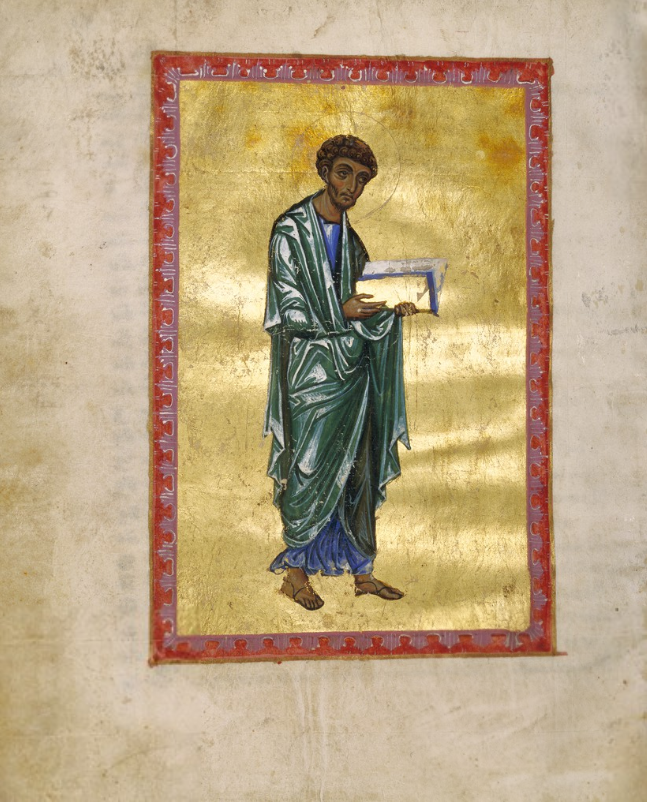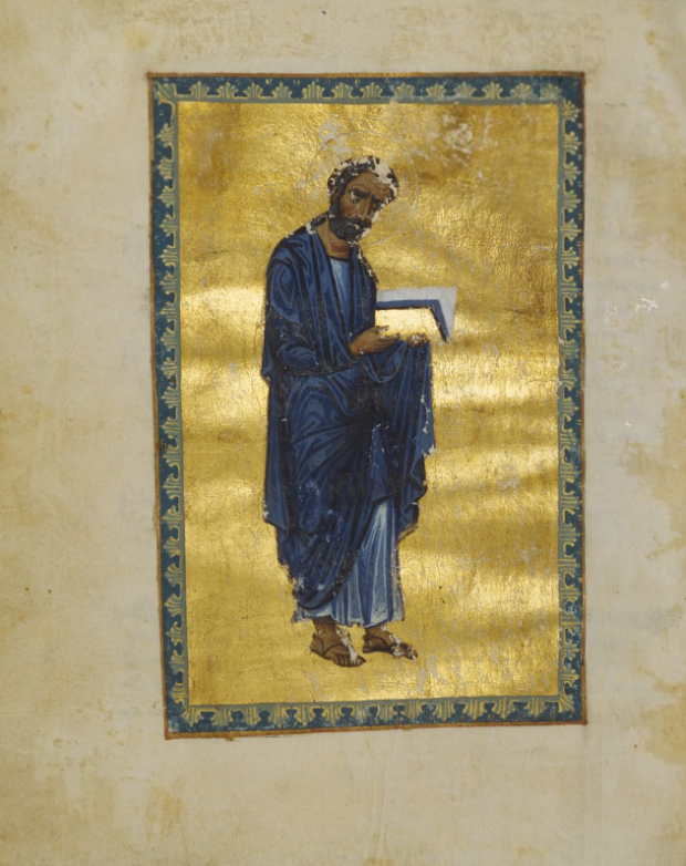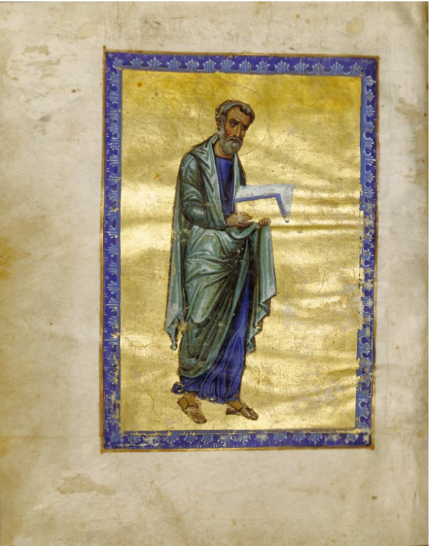 Ακολουθούν οι τέσσερις ολοσέλιδες μικρογραφίες με τα πορτρέτα των Ευαγγελιστών: