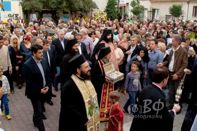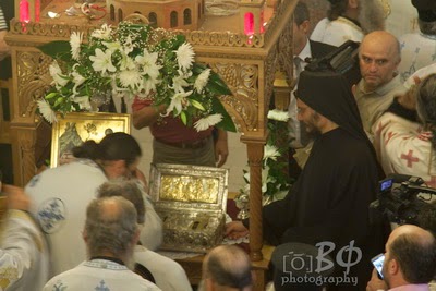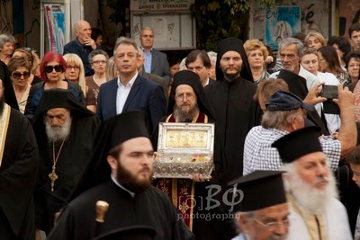 Στην συνέχεια και εν μέσω θρησκευτικής πομπής, υπό στρατιωτικού Αγήματος της ΣΜΥ τα Άγια Κειμήλια που ραίνονταν από λουλούδια πιστών, μεταφέρθηκαν στον Ιερό Ναό Αγίου Αθανασίου Μπάρας όπου τελείται αυτή την ώρα Μέγας Αρχιερατικός Εσπερινός χοροστατούντος του κ. Αλέξιου, ενώ στις 9 το βράδυ, θα τελεστεί Ιερά Παράκληση.