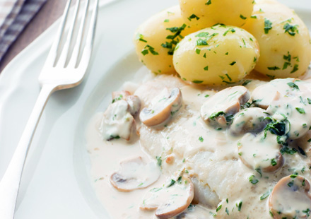 Τα κρατάτε ζεστά, χαλαρά σκεπασμένα με αλουμινόχαρτο. Ρίχνετε την κρέμα στην κατσαρόλα και σιγοβράζετε τη σάλτσα για 5 περίπου λεπτά, μέχρι να δέσει. Την αποσύρετε από τη φωτιά, ανακατεύετε μέσα το υπόλοιπο βούτυρο (2 κοφτές κουταλιές) σε κομματάκια και περιχύνετε τα φιλέτα.