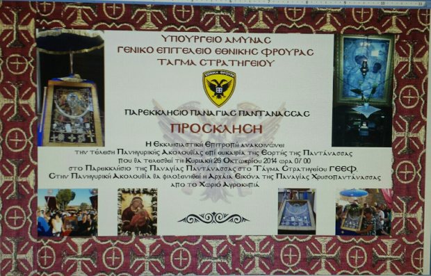 Πρόσκληση σε πανηγυρική ακολουθία στο παρεκκλήσι της Παναγίας Παντάνασσας (ΕΦ) 21 Οκτωβρίου 2014 Tags:Πρόσκληση σε πανηγυρική ακολουθία στο παρεκκλήσι της Παναγίας Παντάνασσας (ΕΦ)