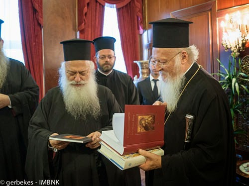 Ο κ. Παντελεήμων προσφώνησε τον Οικουμενικό Πατριάρχη, του ευχήθηκε για την 23η επέτειο από την εκλογή του στο Θρόνο της Κωνσταντινουπόλεως και του προσέφερε αντίτυπα από τις πρόσφατες εκδόσεις της Μητροπόλεως, όπως ο επετειακός τόμος των 20ων Παυλείων, ο τόμος «Ω Πανύμνητε Μήτερ», ο τόμος για τους νεομάρτυρες της Νάουσας και μια πρόσφατη έκδοση για τα χειρόγραφα της Μητροπόλεως.