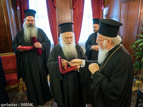 Επίσης ο Μητροπολίτης Βεροίας προσέφερε στον κ. Βαρθολομαίο το χρυσό σταυρό των 20ων Παυλείων.