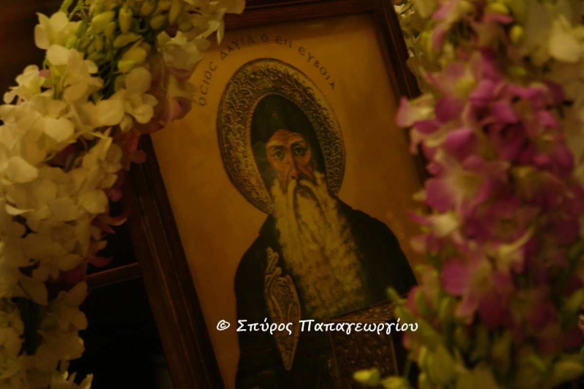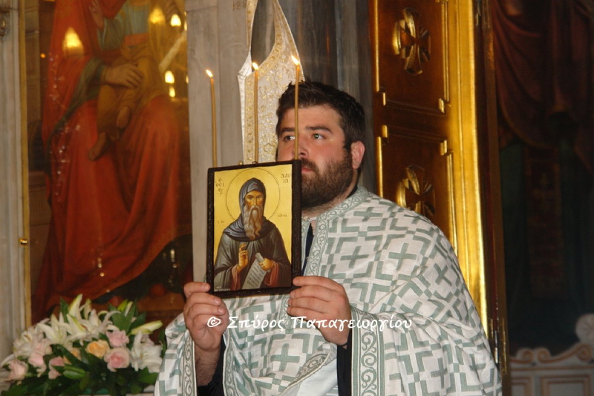 Στη συνέχεια τελέστηκε Εσπερινός μετ’ Αρτοκλασίας και η Παράκληση στον Όσιο Δαυίδ. Ο π. Νικάνωρ ανέφερε στο κήρυγμά του, μεταξύ άλλων πως «Η κάρα του οσίου Δαβίδ του Γέροντος του θαυματουργού που βρίσκεται σήμερα ανάμεσα μας διεγείρει τις αμφιβολίες της λογικής μας και προκαλεί τον ορθολογισμό μας. Είναι δυνατόν οστά νεκρών να θαυματουργούν; Μήπως γυρνάμε στις πιο σκοτεινές στιγμές του μεσαίωνα; Είναι ερωτήματα που βασανίζουν κάθε σκεπτόμενο άνθρωπο. Και όμως μέσα από αυτά τα κρίσιμα ερωτήματα ανατέλλει η αλήθεια της χριστιανικής πίστης και εμπειρίας της Εκκλησίας δηλαδή της κοινωνίας των πιστών. Αυτή η πείρα μας λέει κάτι ανήκουστο. Μας λέει ότι μέσα στα λείψανα των αγίων κρύβεται η χάρη του Θεού. Αυτή η υπερδύναμη είναι ένας θησαυρός πολύτιμος που ενεργεί και εκδηλώνεται με παράδοξο τρόπο καθώς ακούμε τον Άγ. Ιωάννη τον Χρυσόστομο να μας λέει «ἡ τοῦ πνεύματος χάρις ἁπό ψυχής εἰς σώματα καὶ ἀπό σωμάτων εἰς ἱμάτια καὶ ἀπό ἱματίων εἰς ὑποδήματα καὶ ἀπό ὑποδημάτων εἰς σκιάς ἐκτρέχει».