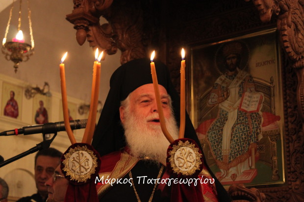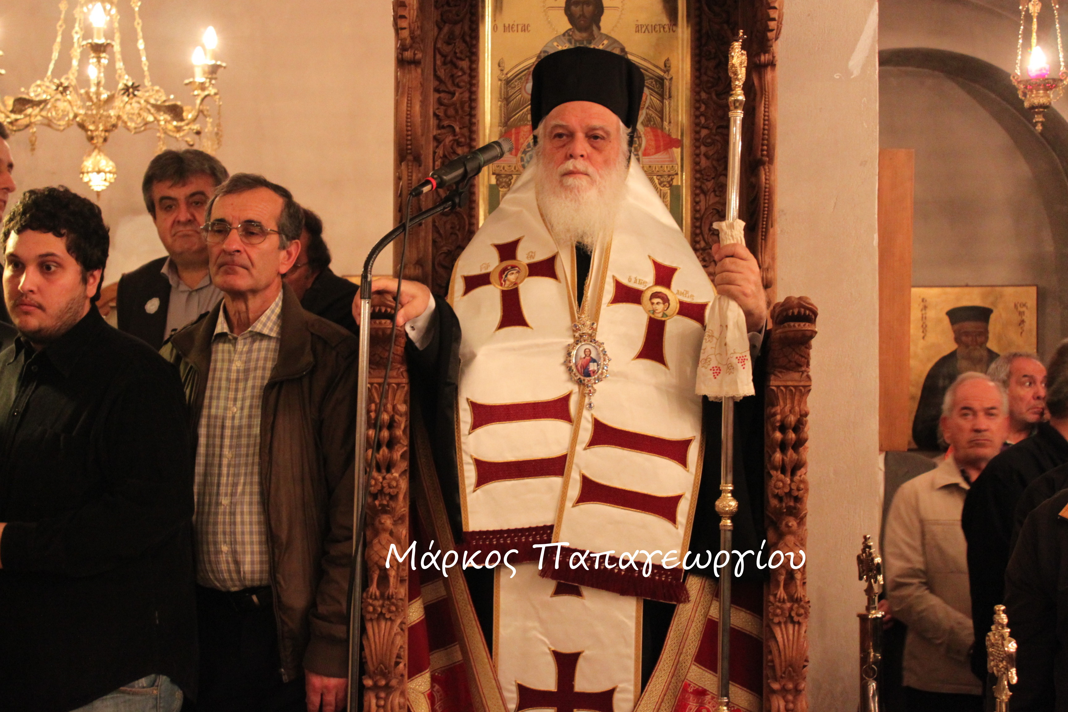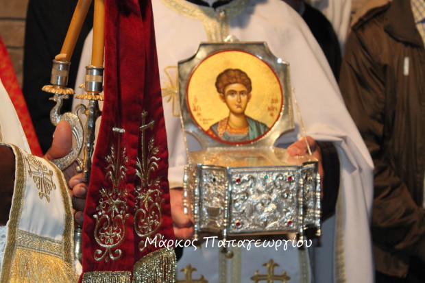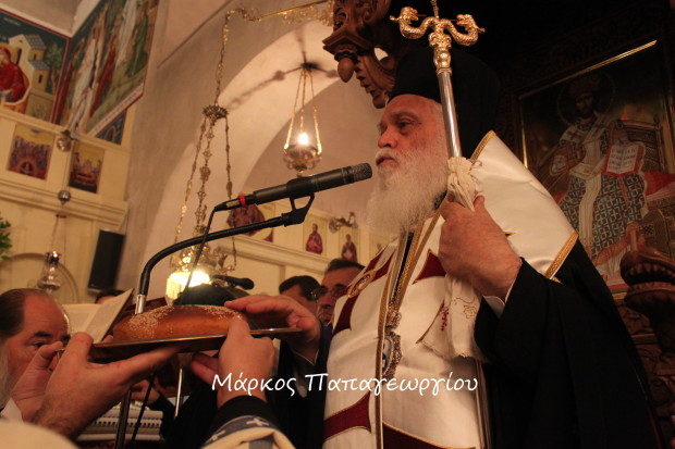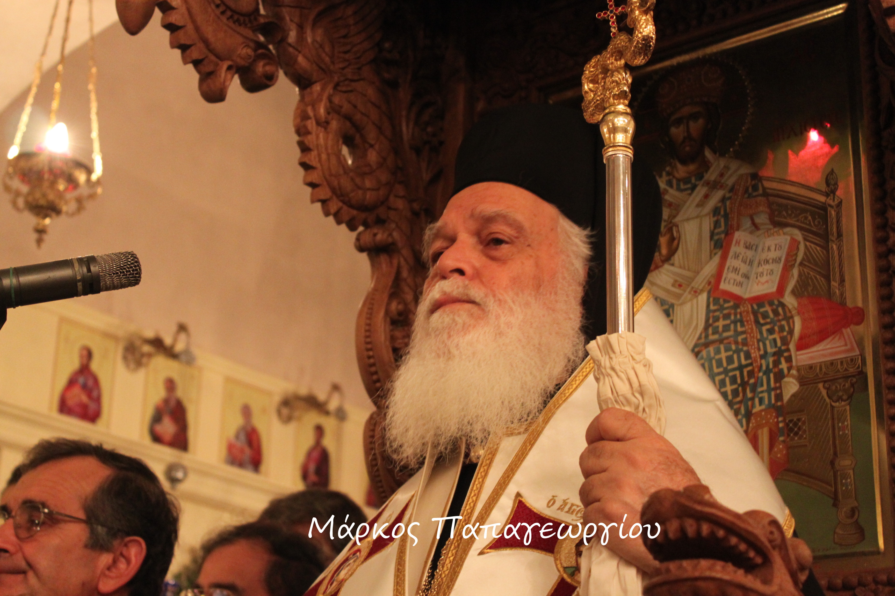 Ο Θεοφιλέστατος αναφέρθηκε στη ζωή του Αγίου και στο βαθύτερο νόημα, λέγοντας πώς, η μέρα αυτή δεν είναι μία απλή επέτειος, οφείλει να είναι μία προσωπική επέτειος μετανοίας και αλλαγής στη ζωή του καθενός από εμάς. Το μήνυμα του Χριστού στίς μέρες μας από τη μία μεριά περιφρονείται, από τους ίδιους τους Χριστιανούς και από την άλλη πολεμείται, εξαιτίας της αντιπαλότητάς του, με τον εκπεσμό της εξουσίας. Μόνον το μήνυμά Του έχει τη δύναμη να καθοδηγεί τον άνθρωπο στην αλήθεια, την αρετή και την σωτηρία του. Και εμείς ώς άλλοι μάρτυρες έχουμε χρέος να το μεταφέρουμε και στα παιδιά μας. Η ψυχή μας και ο νούς μας οφείλουν να είναι δωσμένα στον Κύριο. Τότε ίσως αυτό να είναι το δικό μας, καθημερινό μαρτύριο. Όχι μαρτύριο αίματος, αλλά της συνειδήσεώς μας.