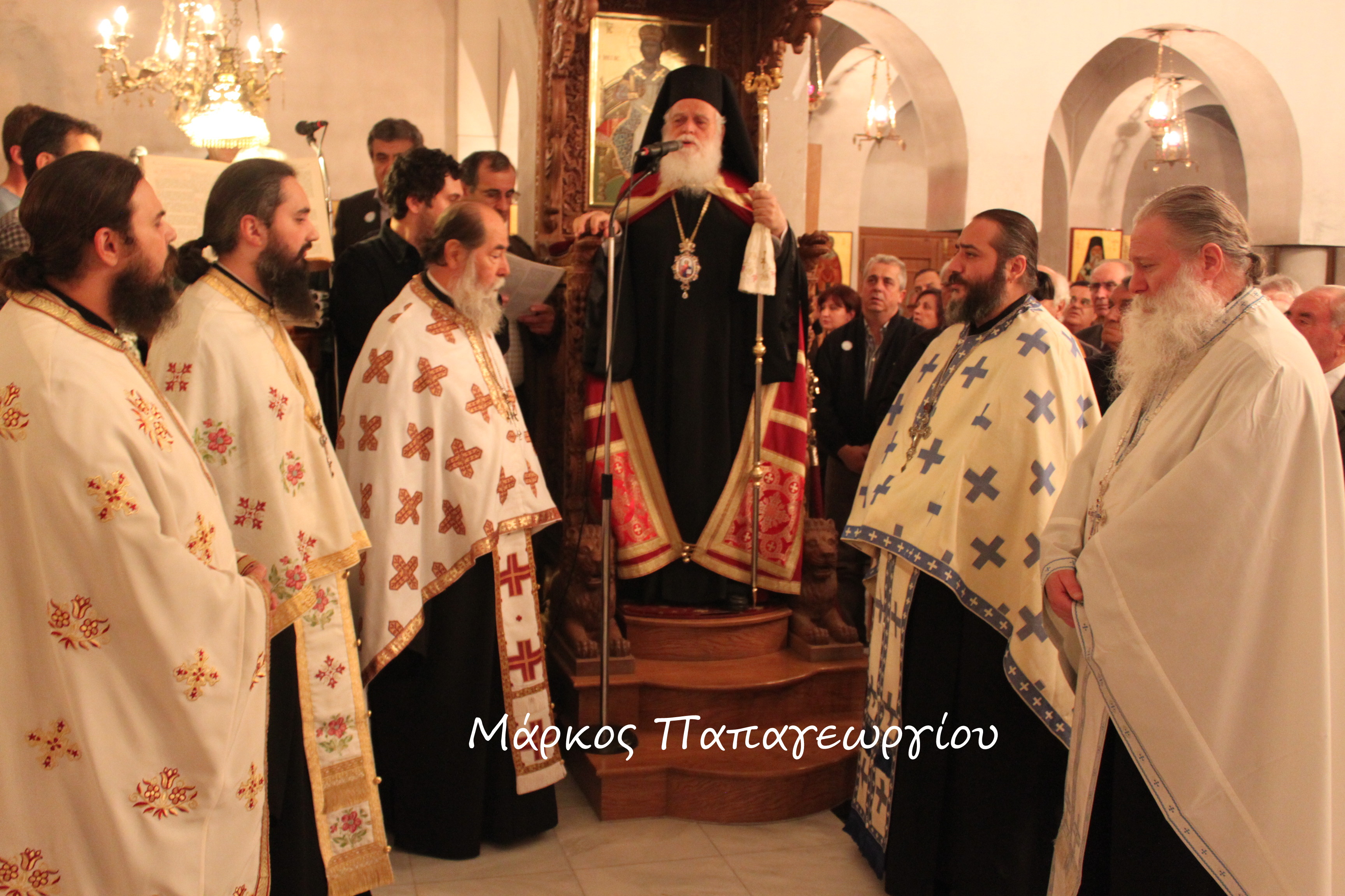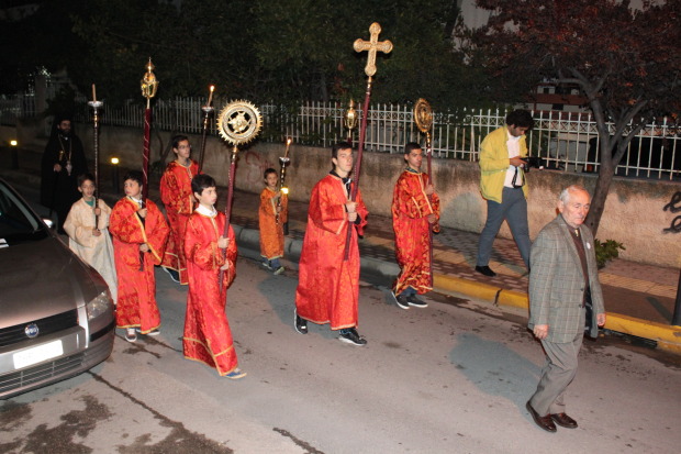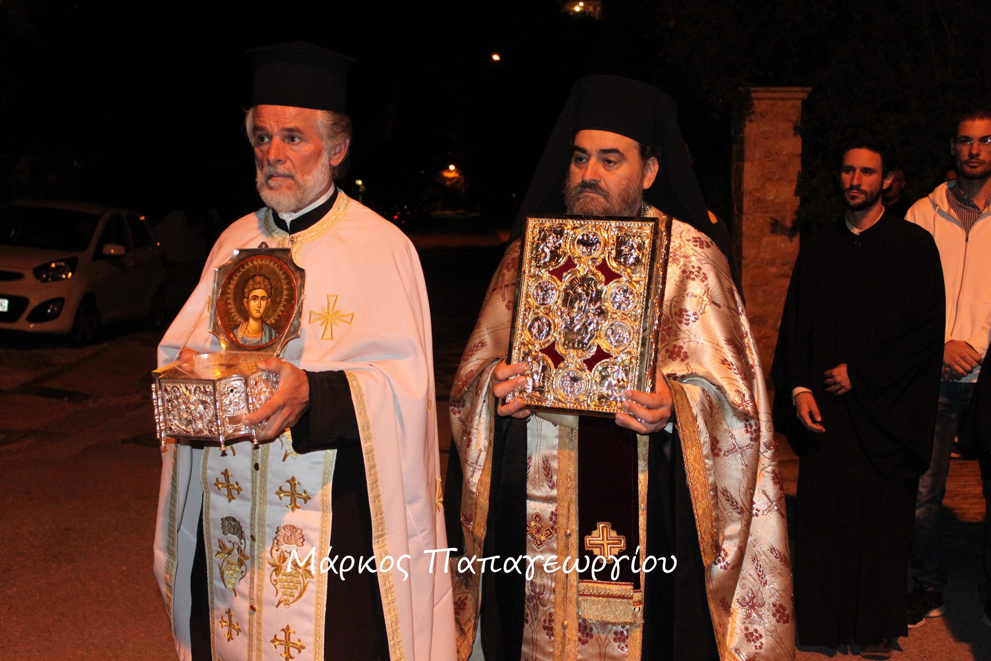 Απόψε τελέσθηκε Μέγας Πανηγυρικός Εσπερινός χοροστατούντος του Σεβασμιωτάτου Καθηγουμένου Επισκόπου, Μητροπολίτη Θερμοπυλών Ιωάννη. Συμμετείχαν επίσης πολλοί ιερείς της Ιεράς Αρχιεπισκοπής Αθηνών.