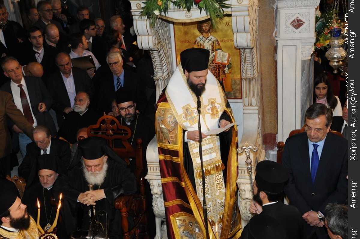 article_19611Παρουσία του Πρωθυπουργού Αντώνη Σαμαρά και της συζύγου του, Υπουργών της Κυβερνήσεως, του κ.Νίκου Παπά, εκπροσώπου του Προέδρου της Αξιωματικής Αντιπολιτεύσεως Αλέξη Τσίπρα, βουλευτών και στελεχών των κομμάτων, εκπροσώπων της Τοπικής Αυτοδιοίκησης, των Δικαστικών Αρχών και των Σωμάτων Ασφαλείας πραγματοποιήθηκε, το απόγευμα του Σαββάτου, η ενθρόνιση του Μητροπολίτη Νέας Ιωνίας και Φιλαδελφείας Γαβριήλ, στον Καθεδρικό Ναό Αγίων Αναργύρων Νέας Ιωνίας.