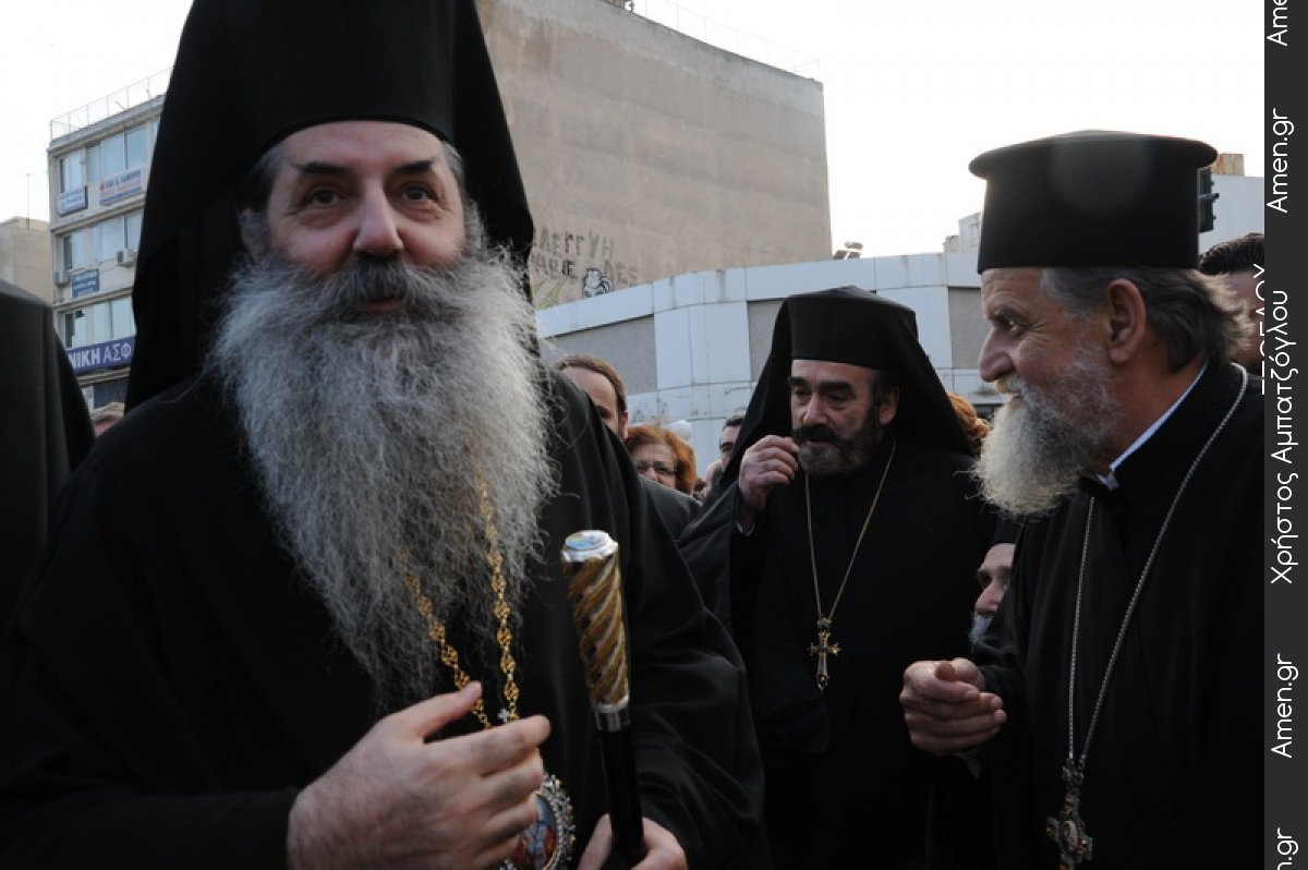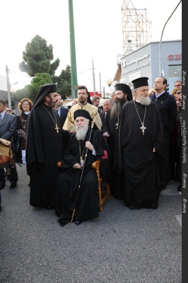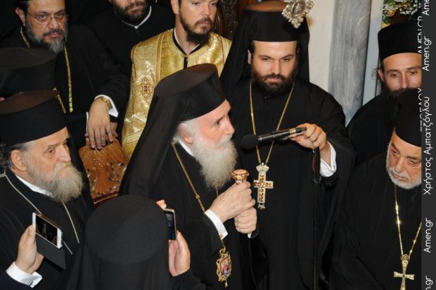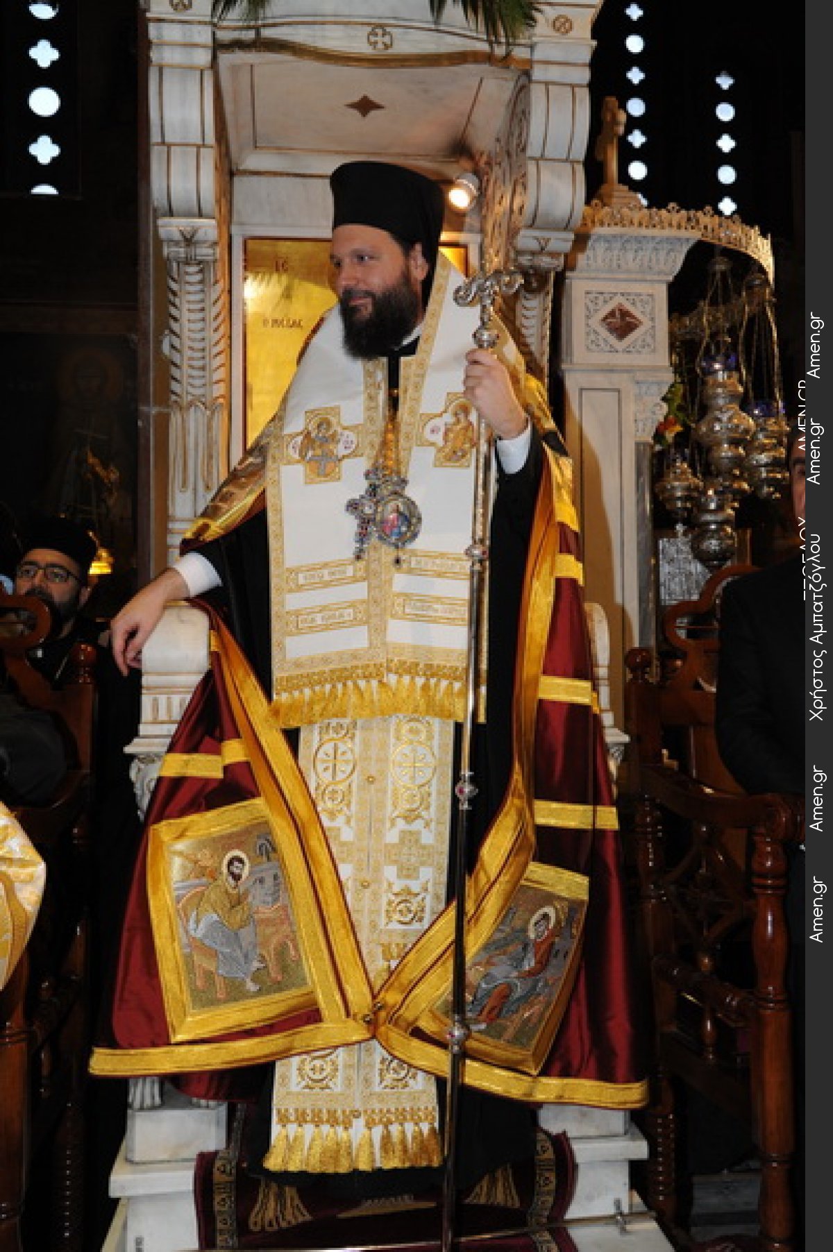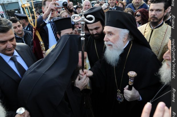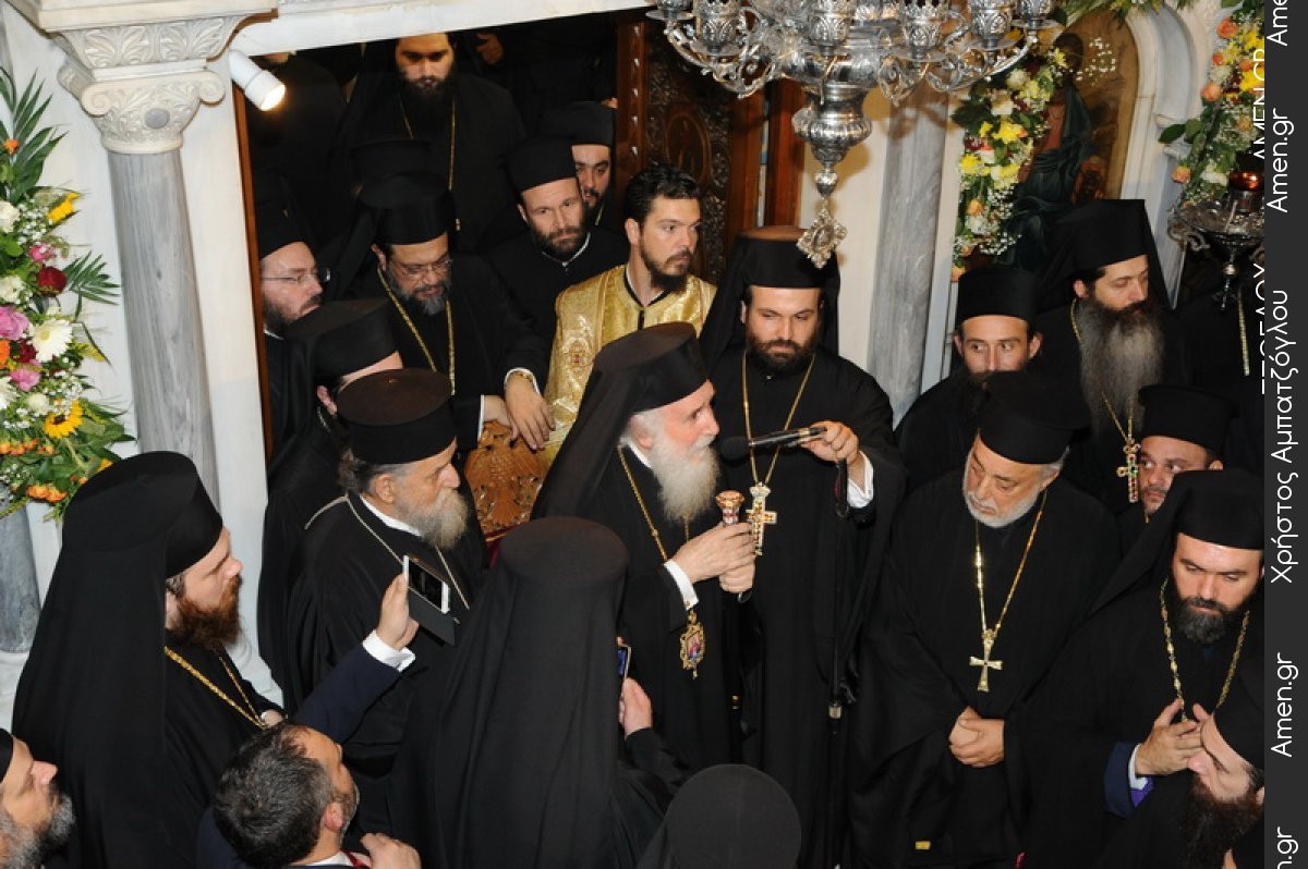 Προηγουμένως στην είσοδο της πόλεως ο τοποτηρητής της Μητροπόλεως, Μητροπολίτης πρώην Νέας Ιωνίας και Φιλαδελφείας Κωνσταντίνος, υποδέχθηκε το νέο Μητροπολίτη και διάδοχό του ο οποίος έφτασε προπεμπόμενος από τον Αρχιεπίσκοπο Αθηνών Ιερώνυμο, του οποίο Βοηθός Επίσκοπος υπήρξε έως της εκλογής του.
